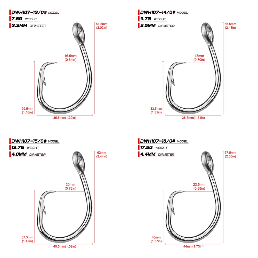 PROBEROS-anzuelo de pesca de agua salada DWH107, anzuelo circular, modelo 13/0 #-16/0 #, anzuelo de acero inoxidable