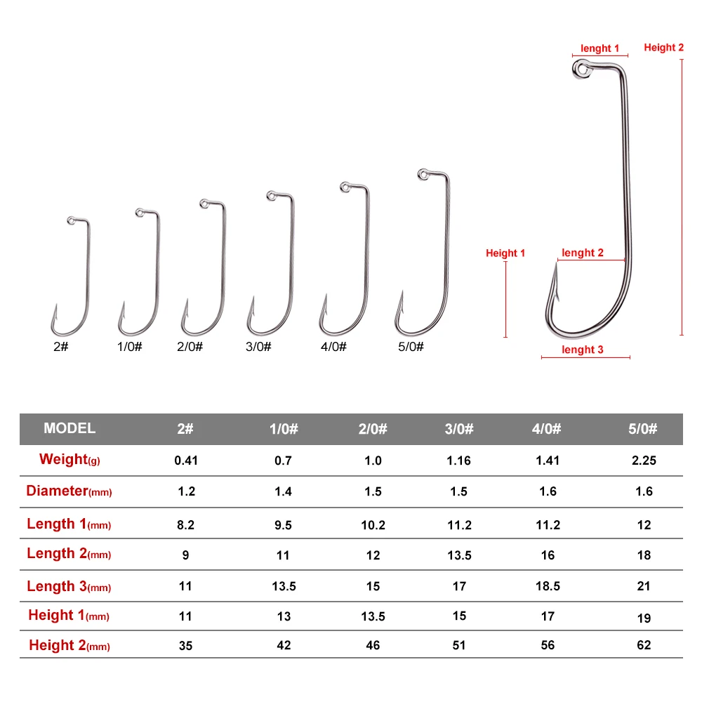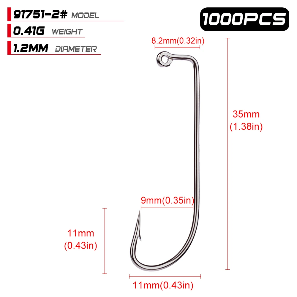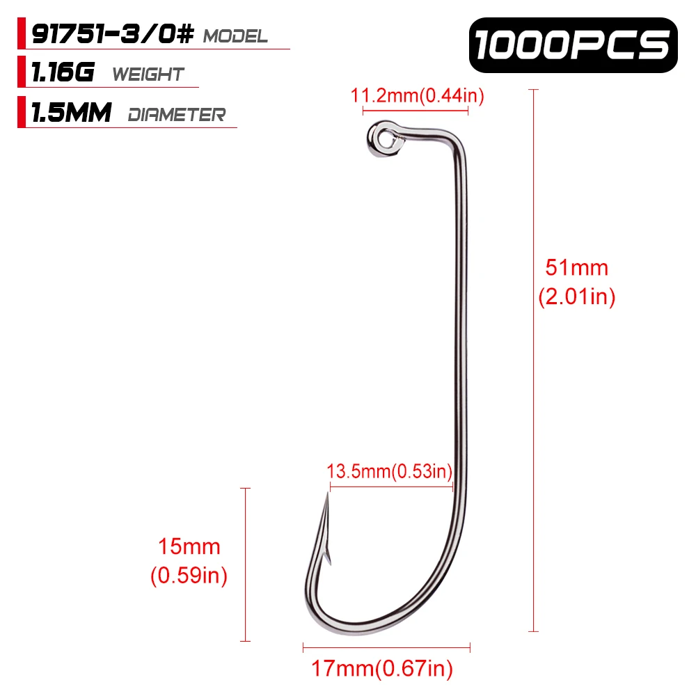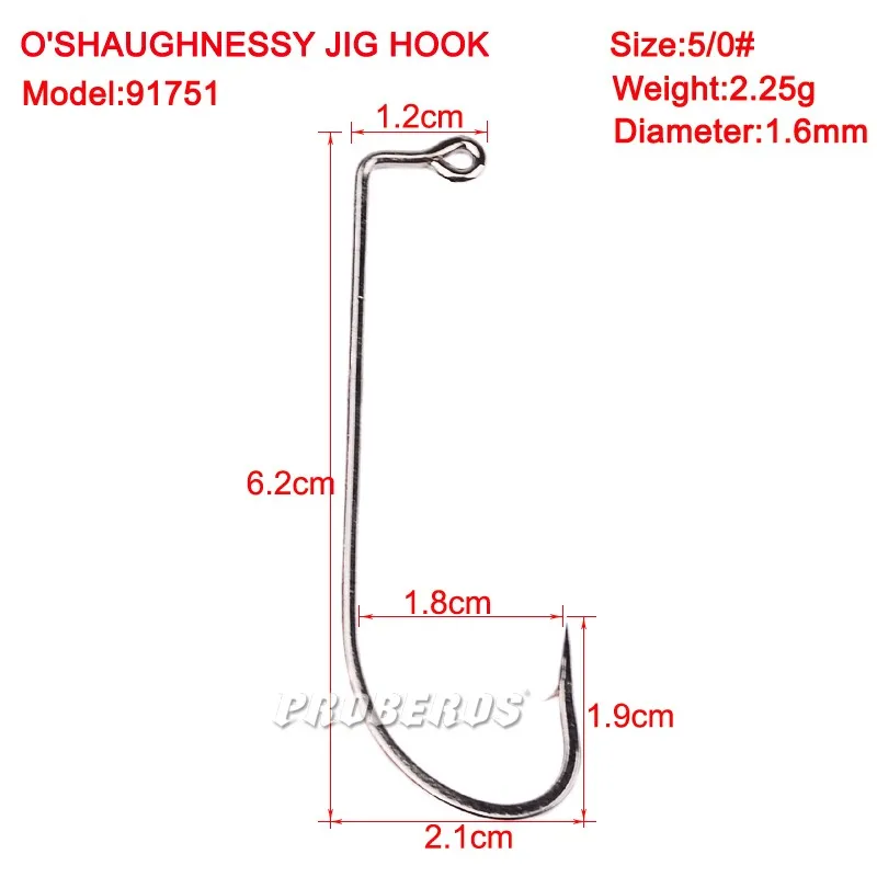 1000 unids/lote anzuelo de pesca anzuelos de acero de alto carbono 2/0-5/0 # O'shaughnessy JIG Hook Jig anzuelo grande anzuelos individuales