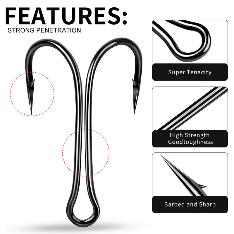 PROBEROS 20 unids/lote anzuelo de pesca doble manivela de acero al carbono anzuelo de plantilla de púas para pesca de carpa atado de moscas anzuelos de señuelo suave