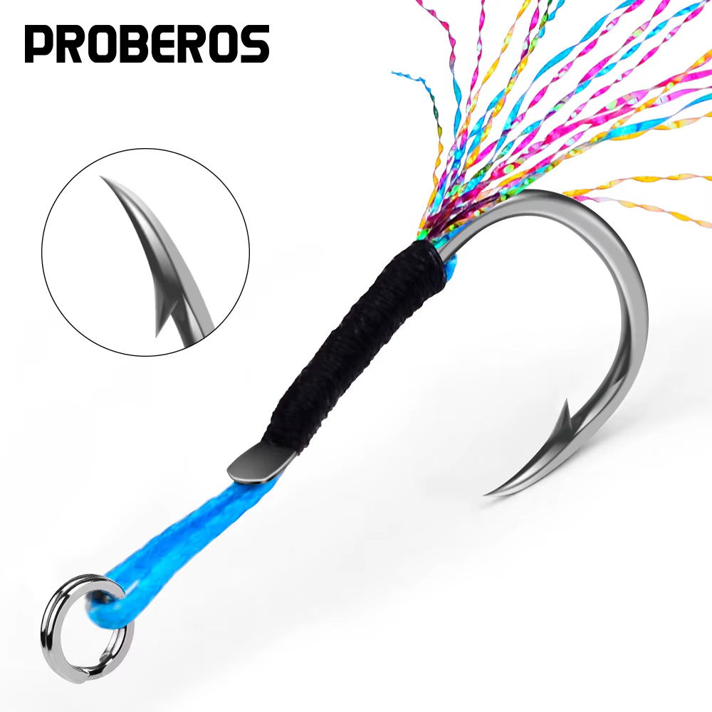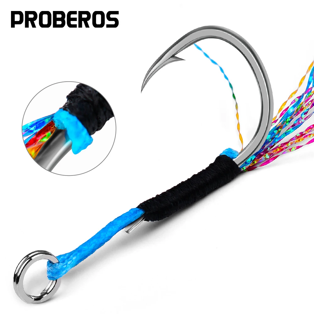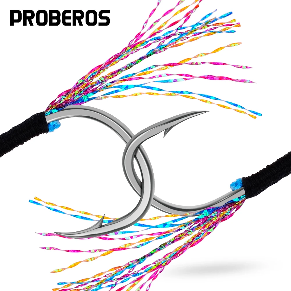 PROBEROS 10 atado con placa de hierro de Pesca de Mar de seda brillante anzuelo de Pesca de Mar barco de pesca anzuelo equipo de pesca al por mayor