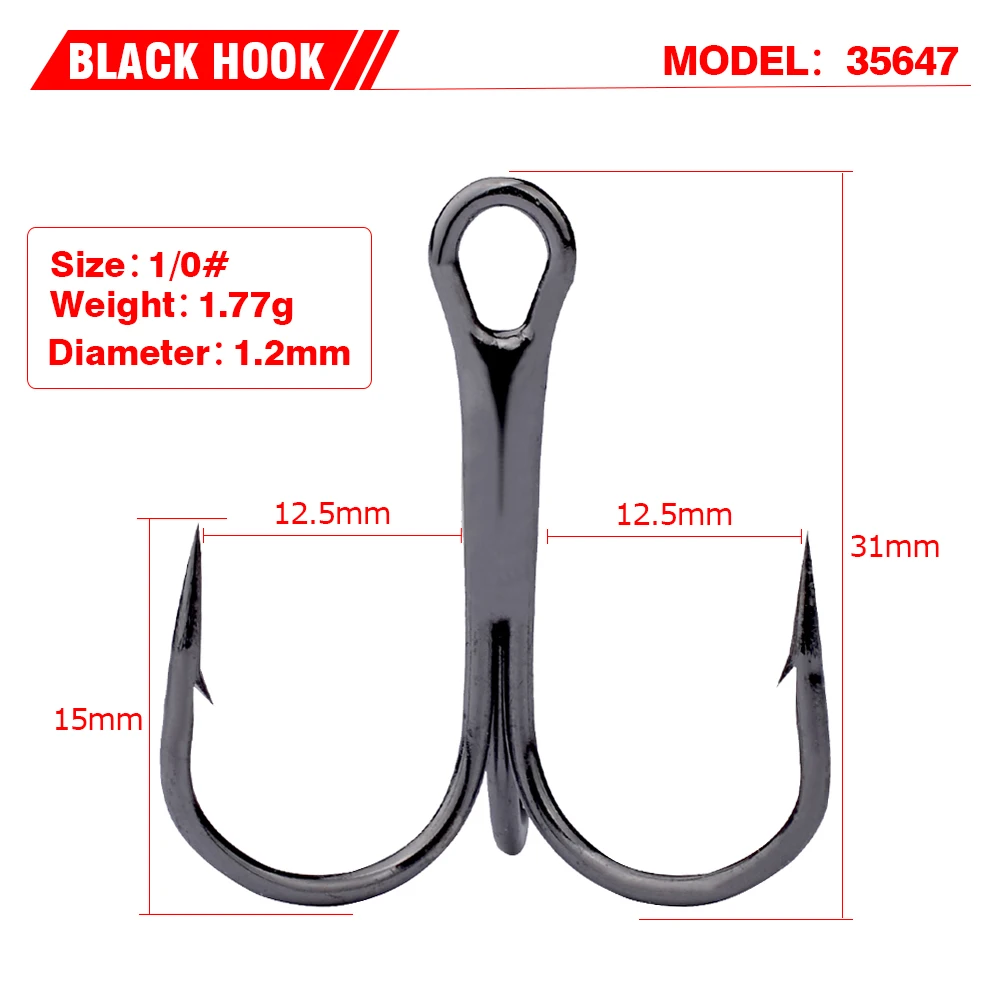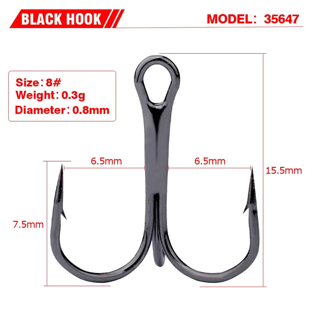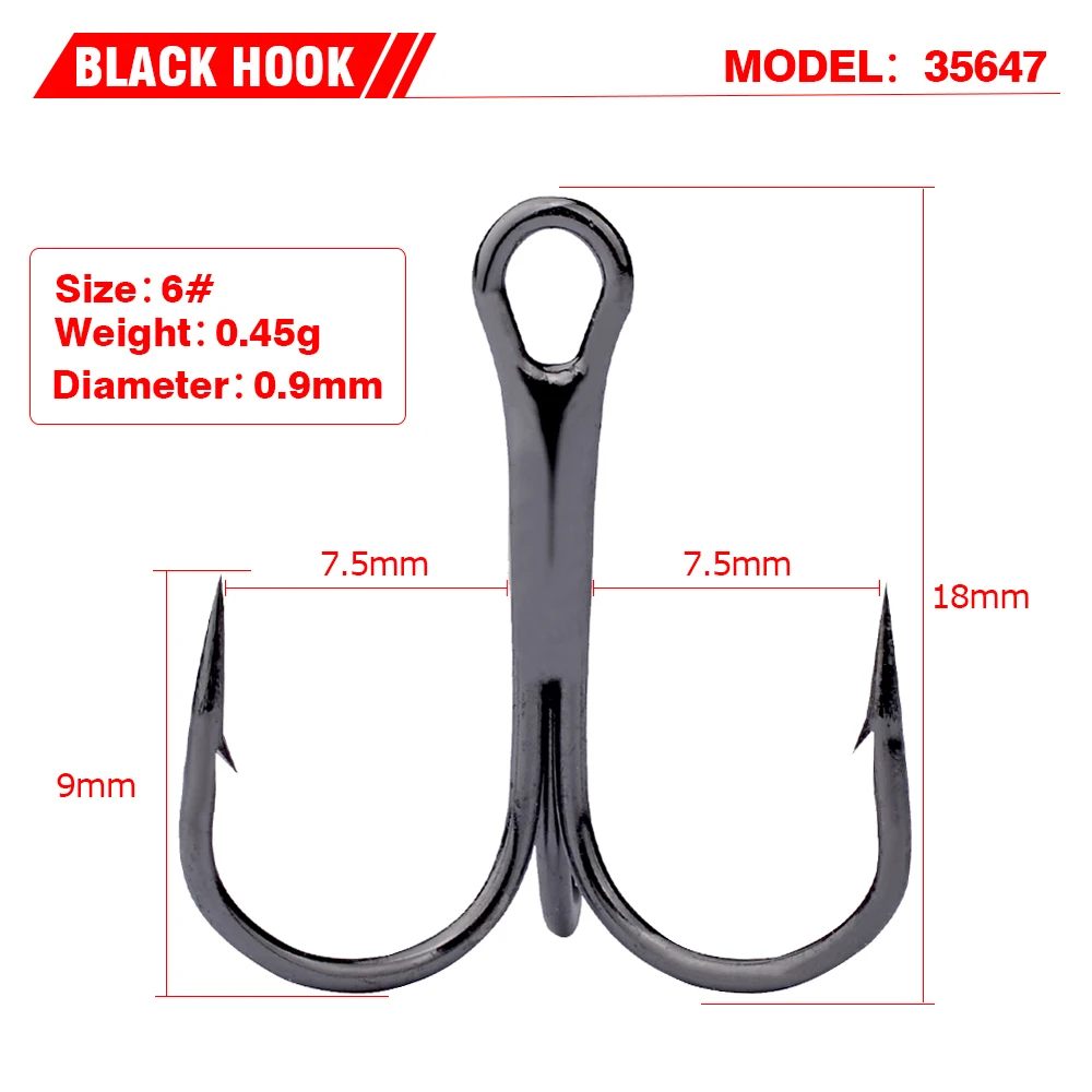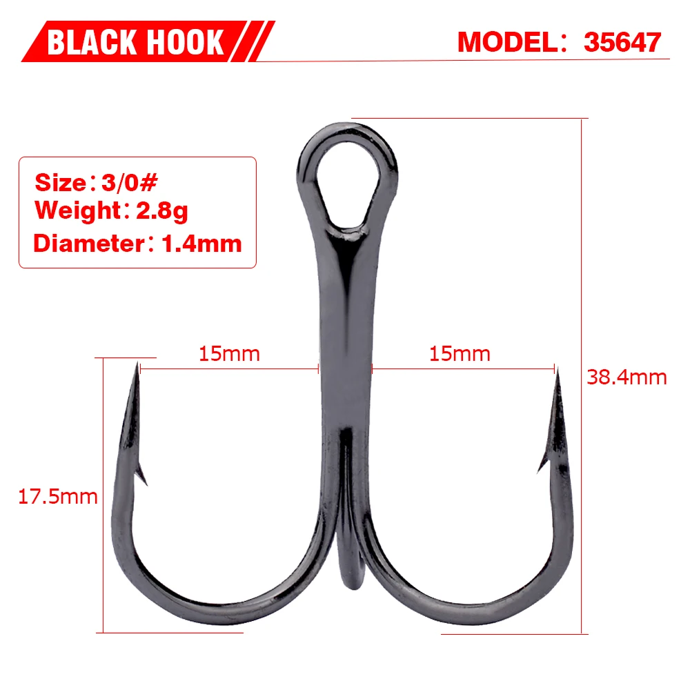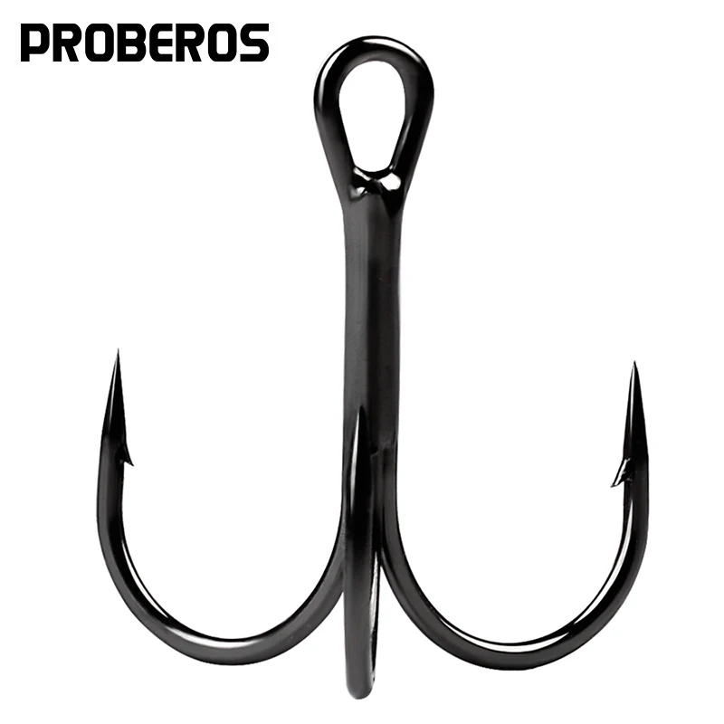 PROBEROS-anzuelo de pesca triple de acero al carbono, 100 unidades, Color negro/Rojo/marrón/plateado/mate, 3/0 #-14 #