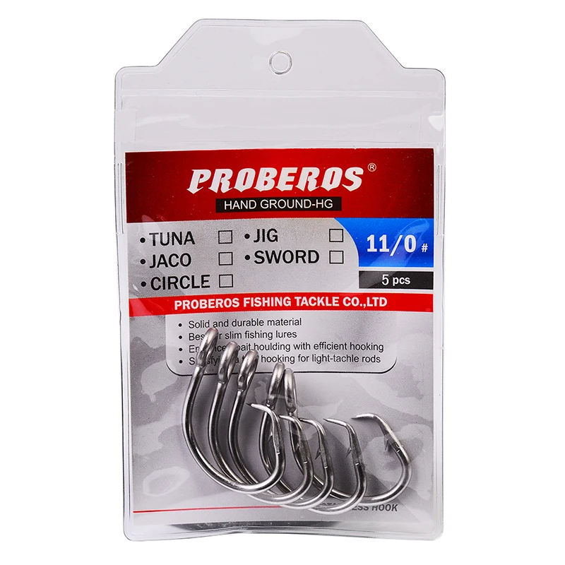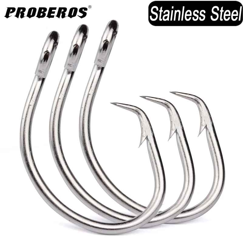 PROBEROS 5 unids/lote anzuelos de pesca de agua salada anzuelos circulares 11/0-12/0-13/0-14/0-15/0 # anzuelos Jigging de acero inoxidable