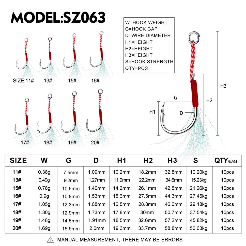 PROBEROS 10 Uds ganchos de pesca de Metal individuales 11-13-15-16-17-18-19-20 # ganchos de pesca de acero de alto carbono con línea de PE anzuelo de pluma
