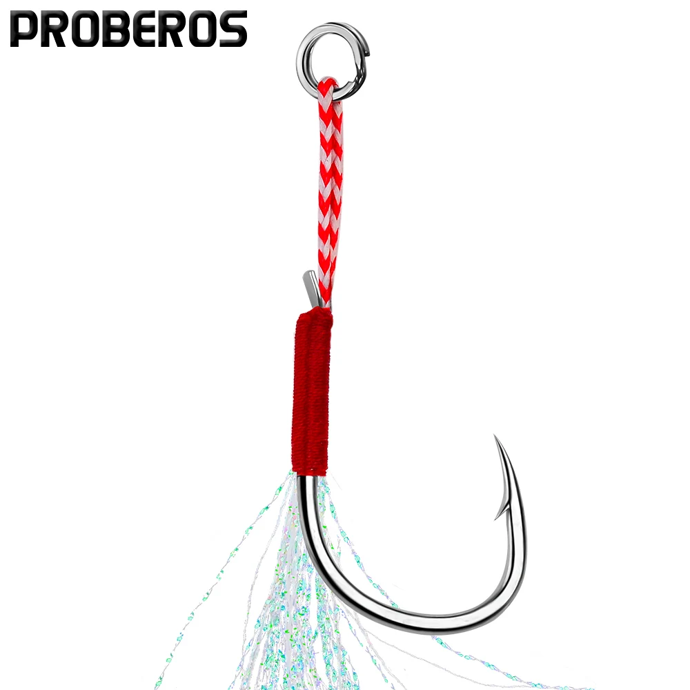 PROBEROS 10 Uds ganchos de pesca de Metal individuales 11-13-15-16-17-18-19-20 # ganchos de pesca de acero de alto carbono con línea de PE anzuelo de pluma