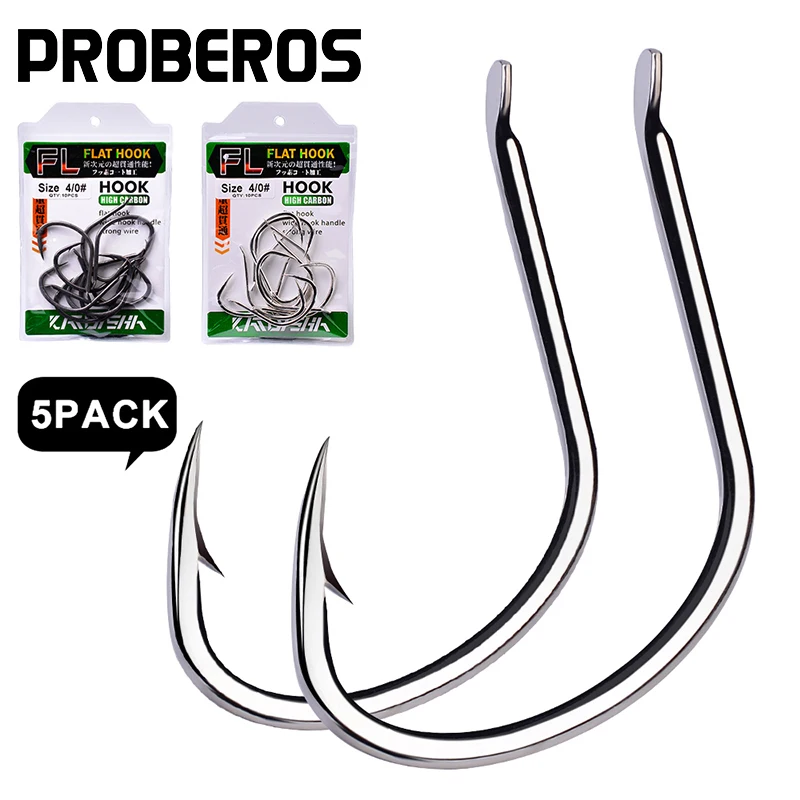 PROBEROS 50 Anzuelos de pesca de alto carbono 1/0-2/0-3/0 # Anzuelos de pesca de acero Sea Pike Anzuelos de jigging individuales de paso lento