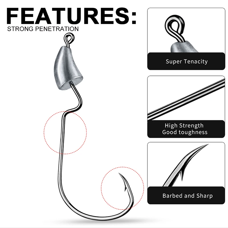 PROBEROS-anzuelos de pesca de 1,75g, 2,5g, 3,5g, de acero de alto carbono, Offset, señuelo de gusano suave, aparejos de pesca de carpa, 5 uds.