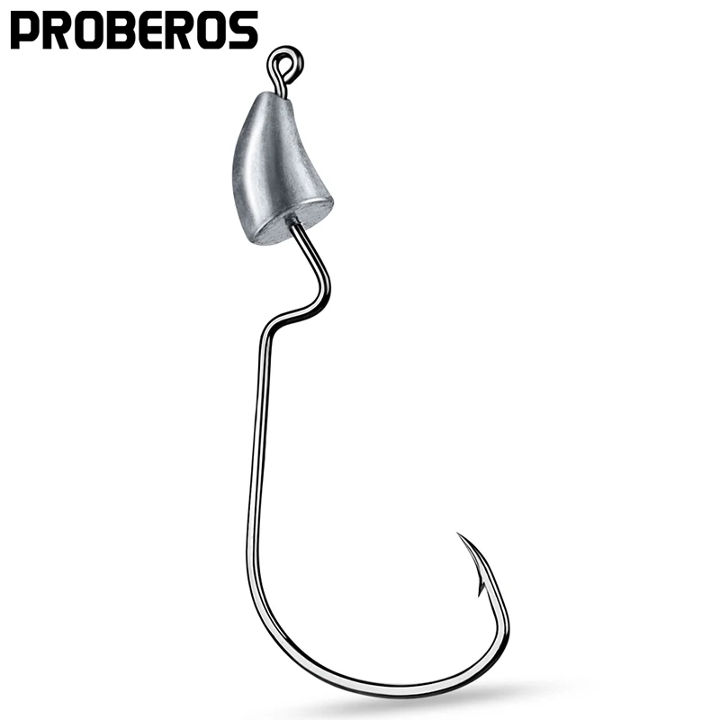 PROBEROS-anzuelos de pesca de 1,75g, 2,5g, 3,5g, de acero de alto carbono, Offset, señuelo de gusano suave, aparejos de pesca de carpa, 5 uds.