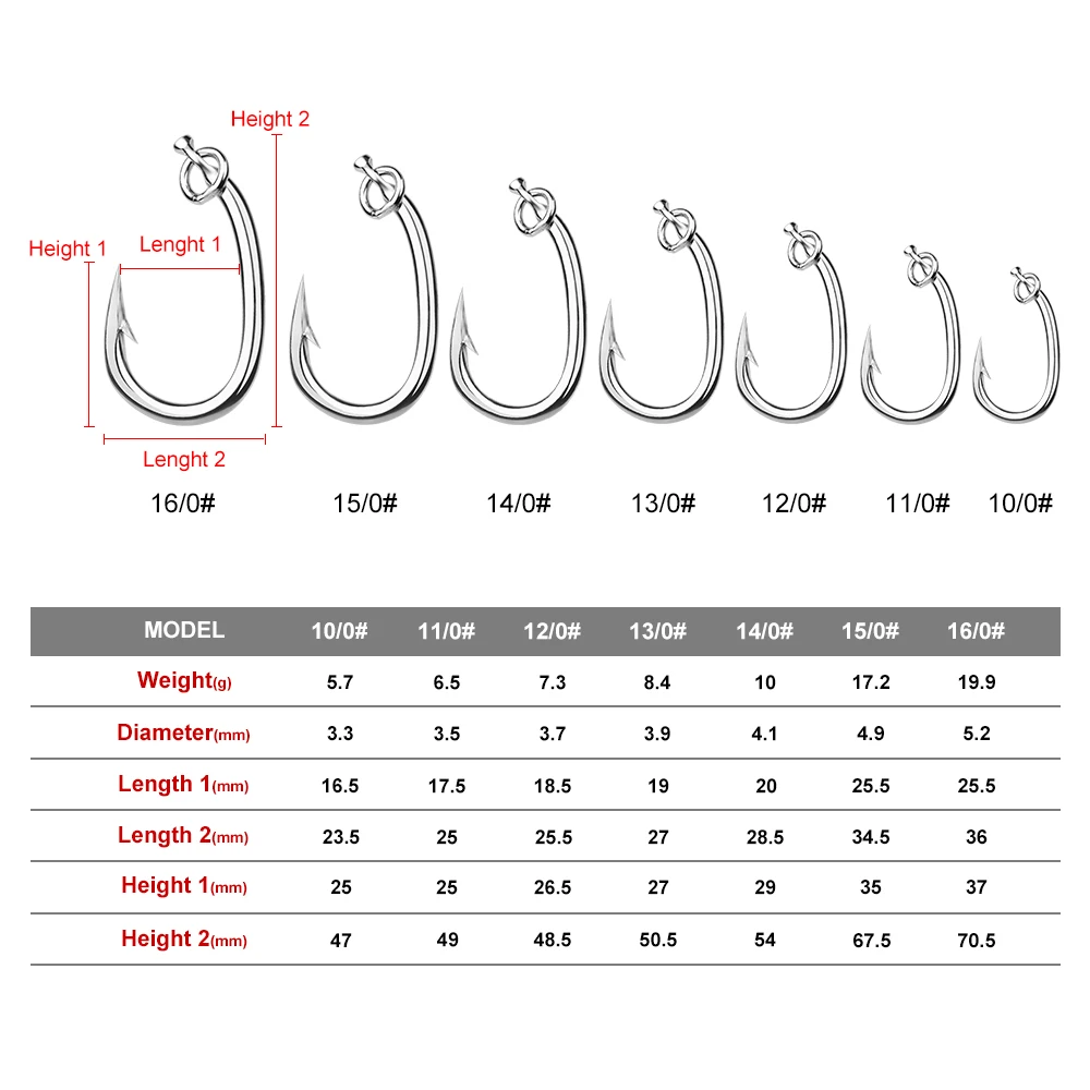 PROBEROS Anzuelos de Pesca de Agua Salada, Anzuelos de Acero Inoxidable, 10/0-11/0-12/0-13/0-14/0 #, 3/5/15/0