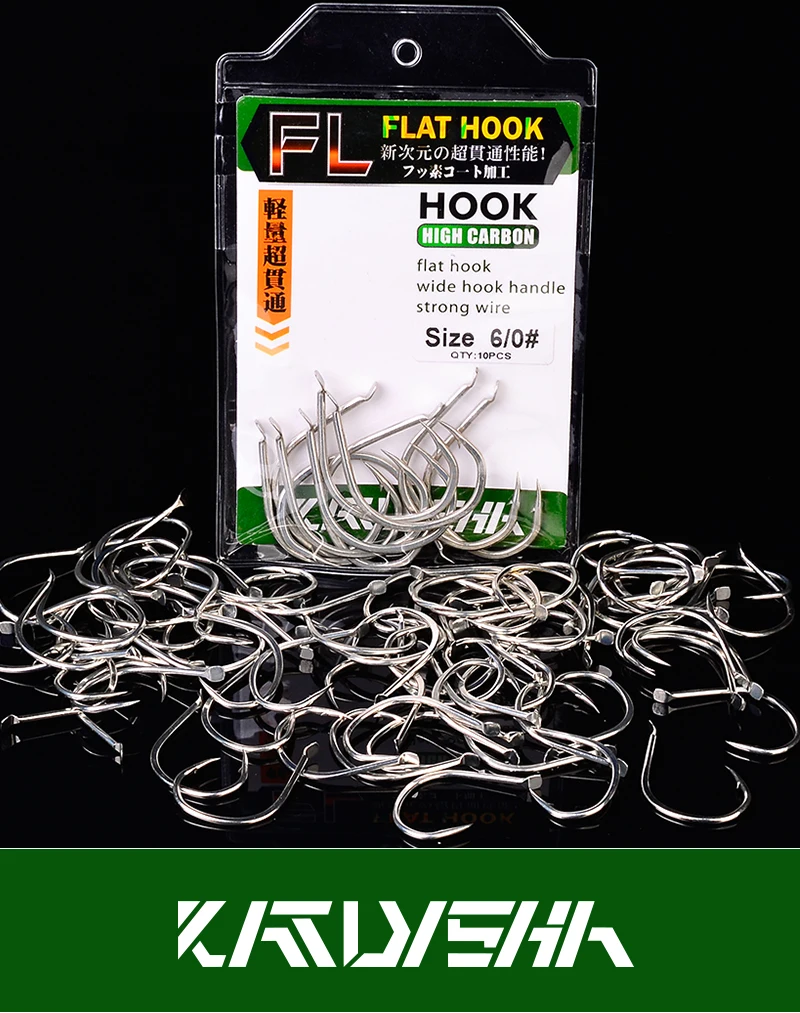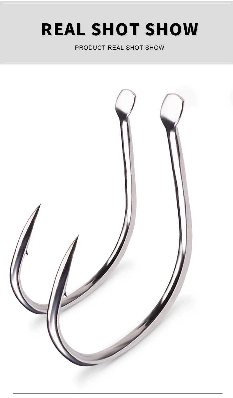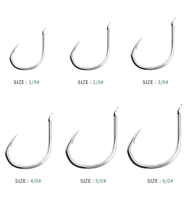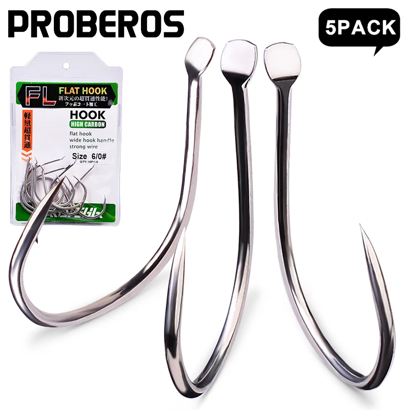PROBEROS 50 Uds anzuelos de pesca Jigging tamaño 1/0-2/0-3/0-4/0 # anzuelos planos de paso lento anzuelos individuales de acero de alto carbono con púas