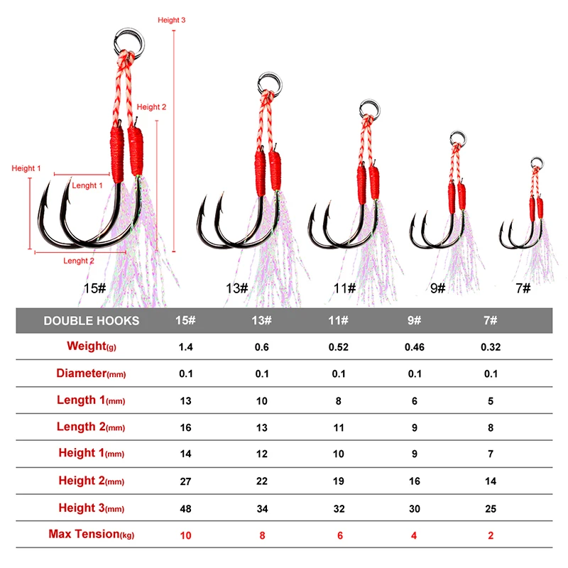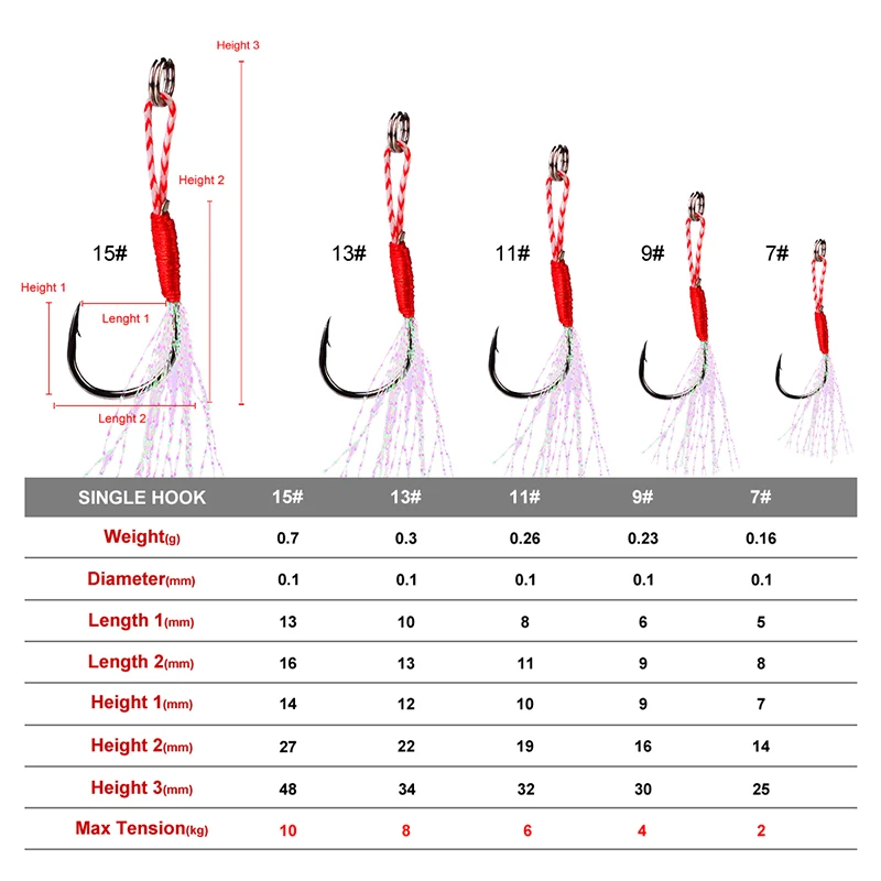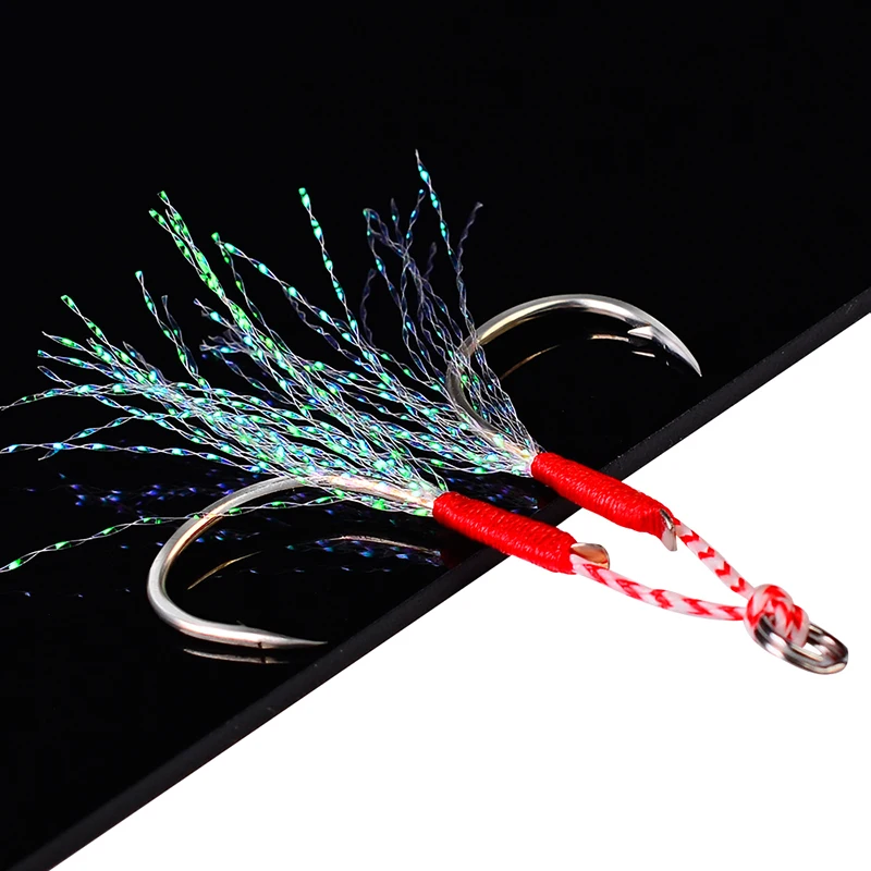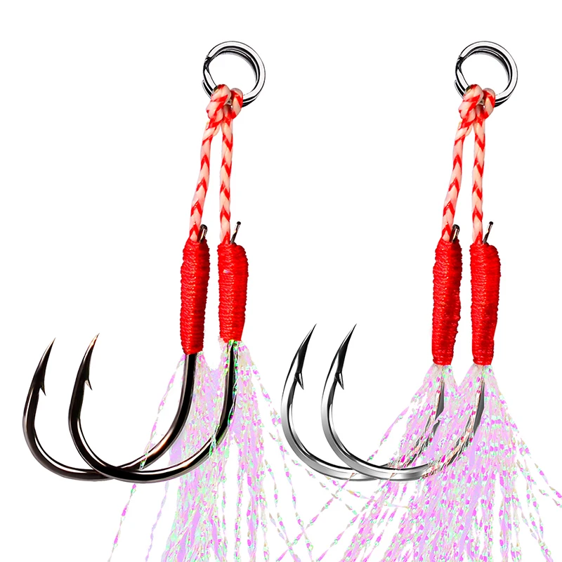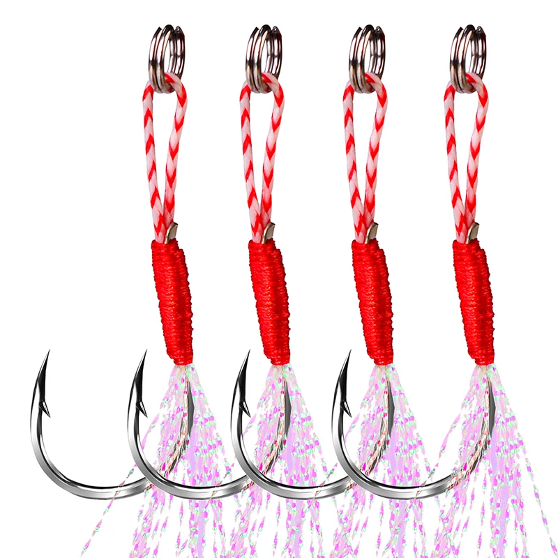 PROBEROS-anzuelos de pesca de tamaño 7-9-11-13-15 #, anzuelos de púas de Metal de Jigging lento, anzuelos de pesca de ayuda con pluma de línea de PE, 50 Uds.