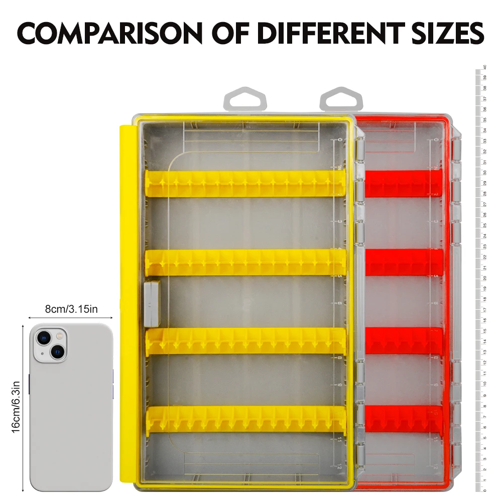 Proberos-caja de almacenamiento de aparejos de pesca, organizador de señuelos múltiples con hoja de plantilla, color naranja y amarillo, 1 ud.