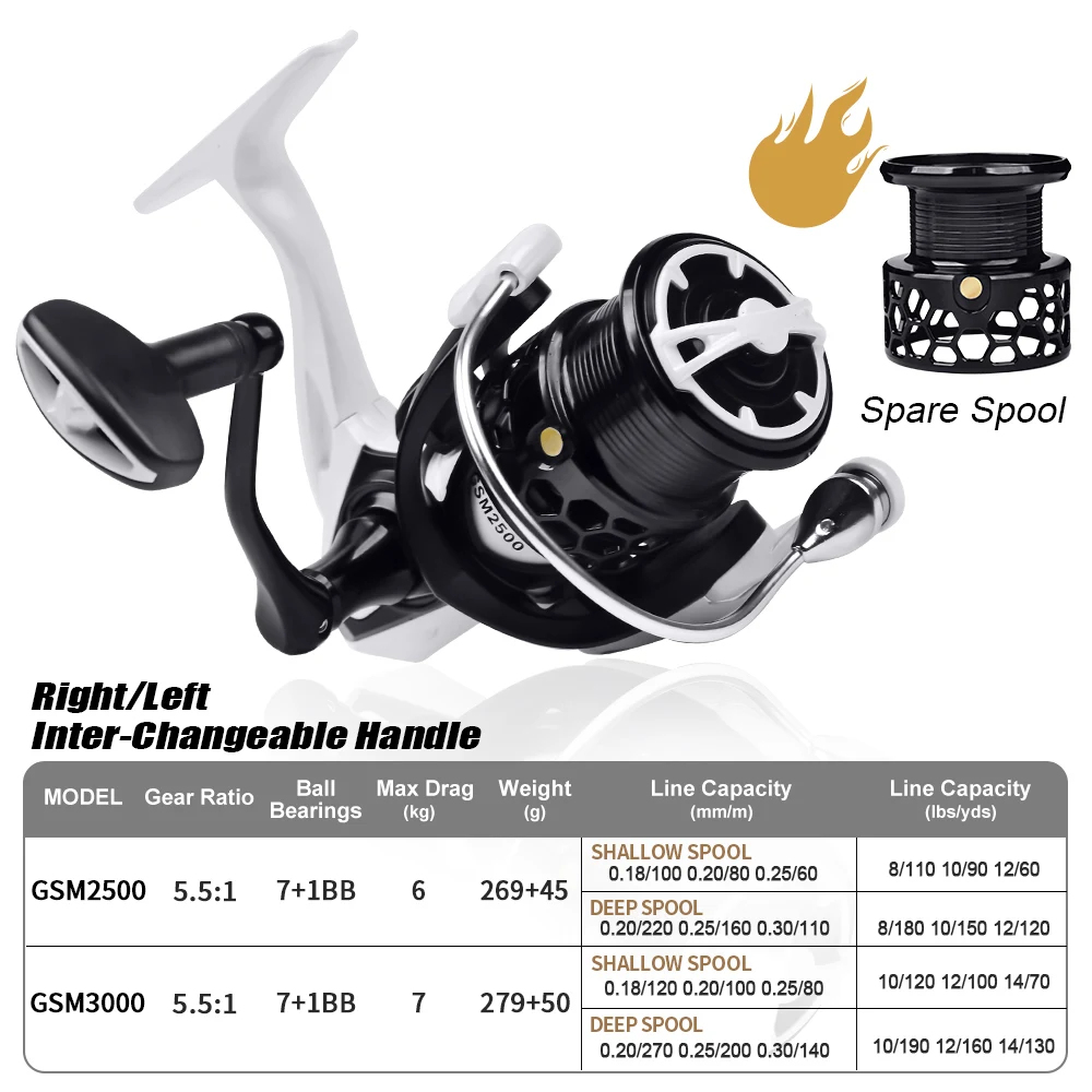 Carrete giratorio de PROBEROS serie 2500-3000 rueda de Pesca con bobina adicional 5,5: 1 mango izquierdo y derecho de alta velocidad Pesca intercambiable