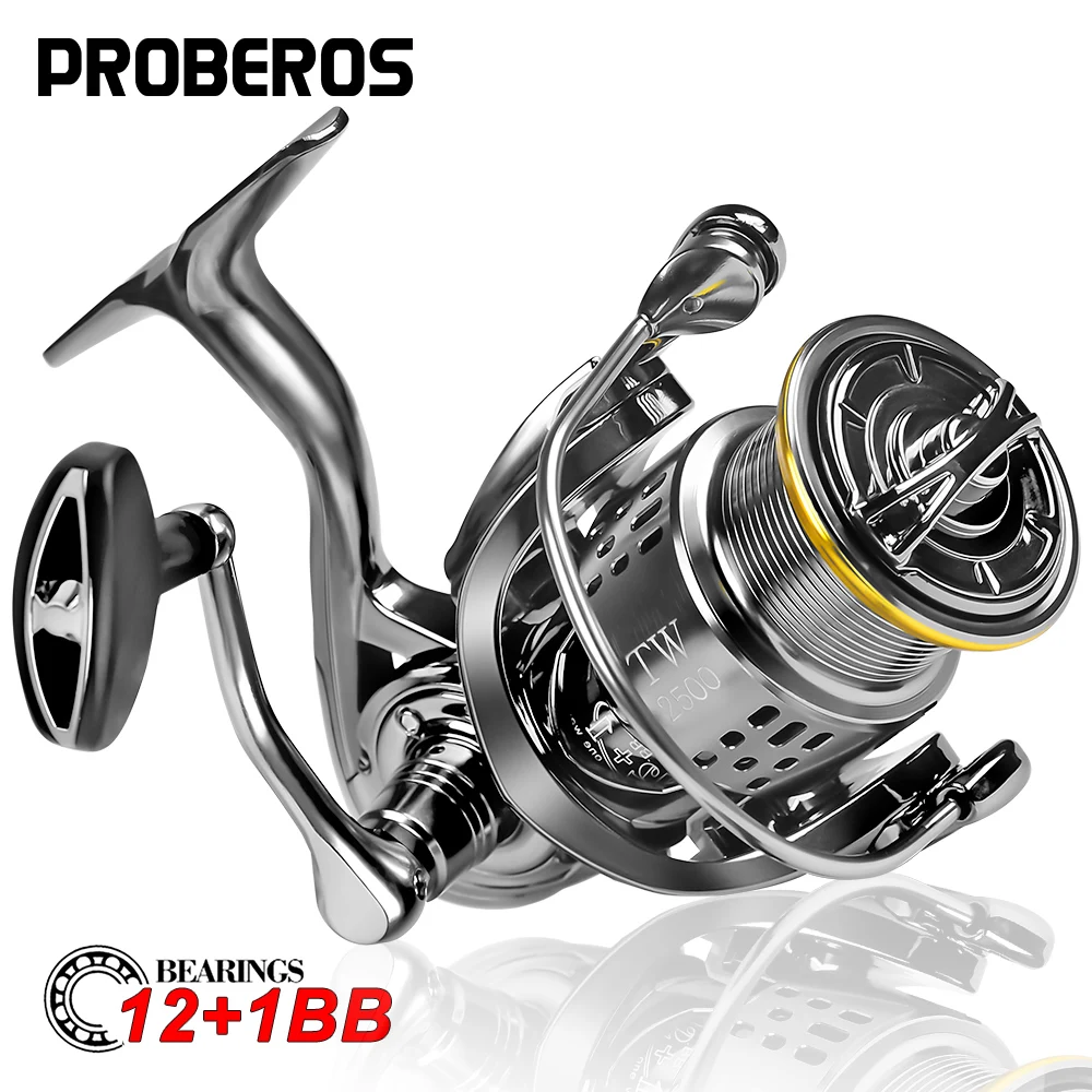 Carrete de pesca PROBEROS CNC carrete de máquina carrete giratorio 5,1: 1/5.5:1 rueda de mango de Metal completo de alta velocidad intercambiable derecha e izquierda