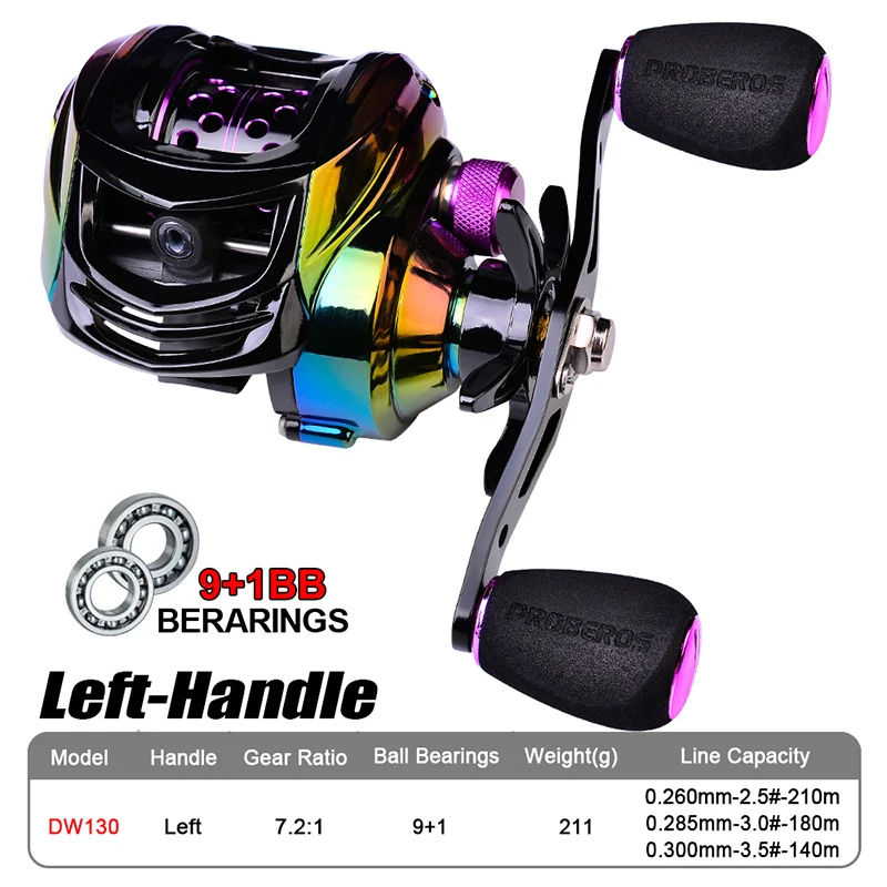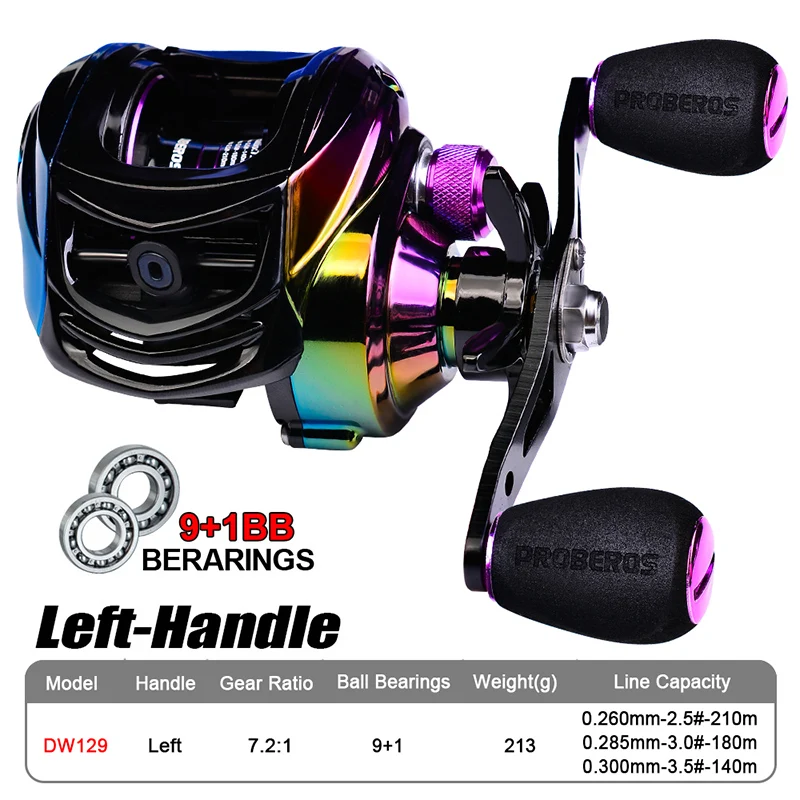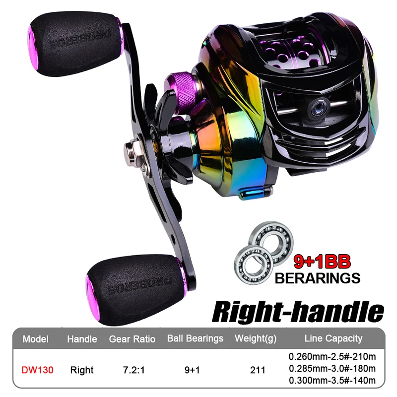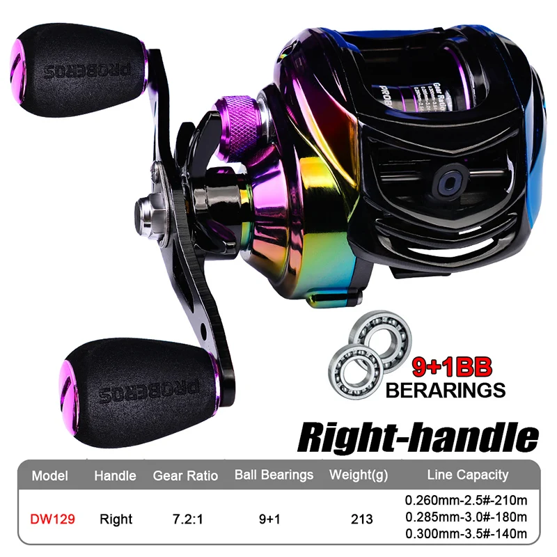 Carrete de pesca colorido nuevo 7,2: 1 carcasa de carbono ligero 9 + 1BB magnético Max Drag 22LB sistema de freno carrete de pesca de fundición de cebo