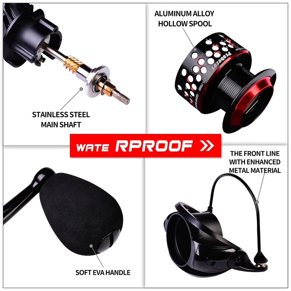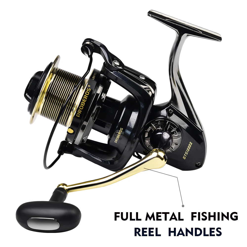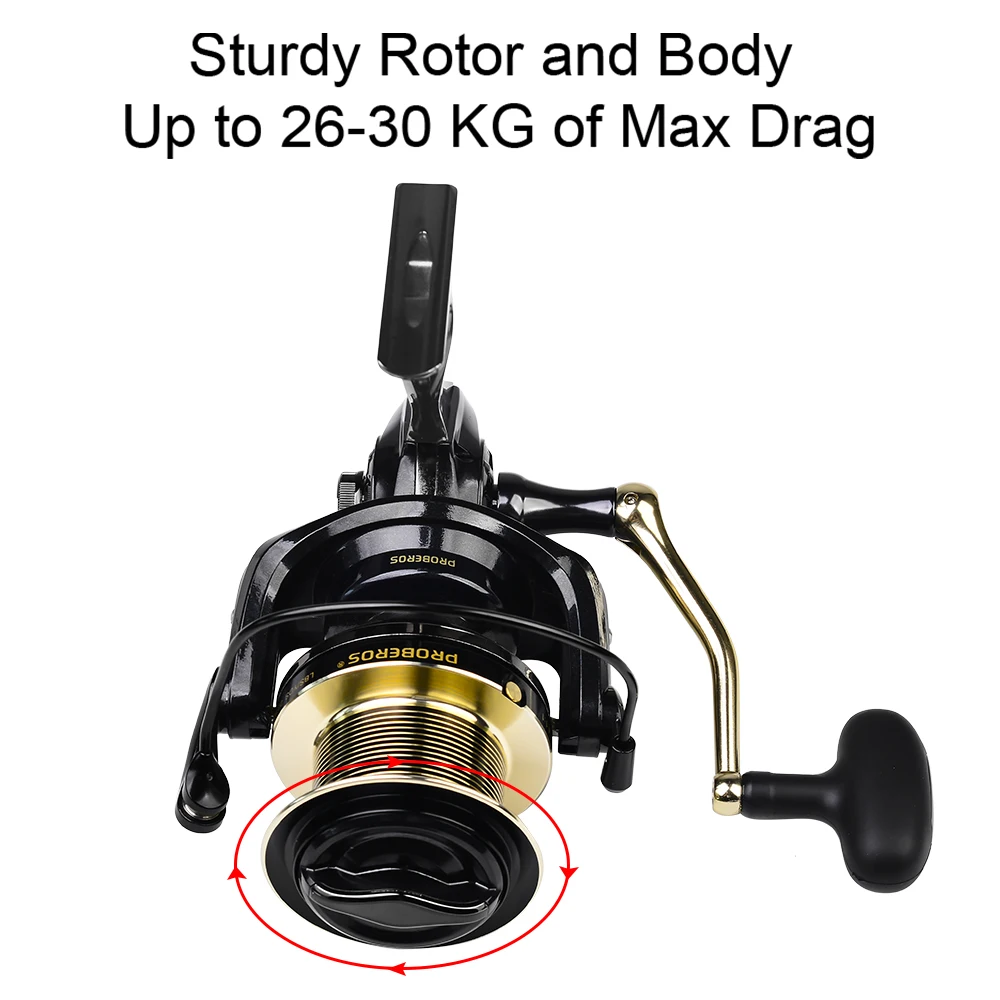 PROBEROS 4,7: 1 Carrete giratorio de alta velocidad 26-28KG Carrete de pesca de arrastre máximo Serie 8000-12000 Carrete de metal completo Rueda de agua salada Pesca