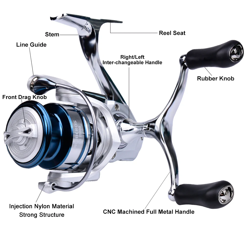 Carrete de pesca PROBEROS serie 1500-2500 rueda giratoria de doble mango carrete a prueba de agua 5 + 1BB mango izquierdo y derecho intercambiable