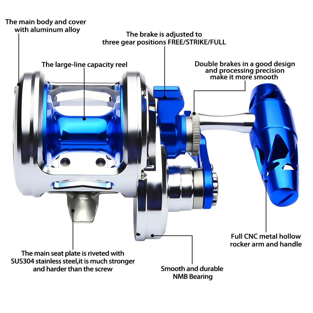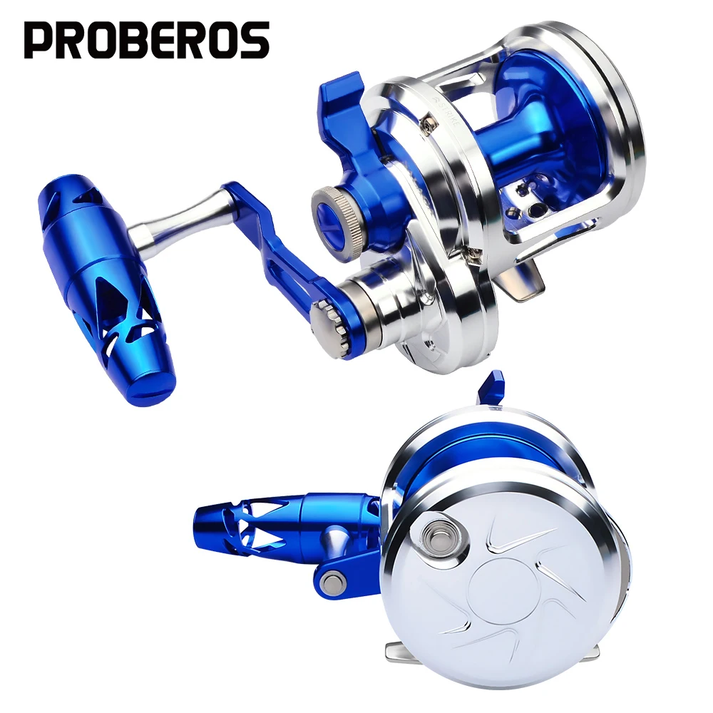 PROBEROS-Carretes de pesca Jigging 5,7: 1, Color azul y plateado (mano izquierda/derecha), carretes de arrastre de aluminio CNC, carretes de pesca de agua de mar mecanizados