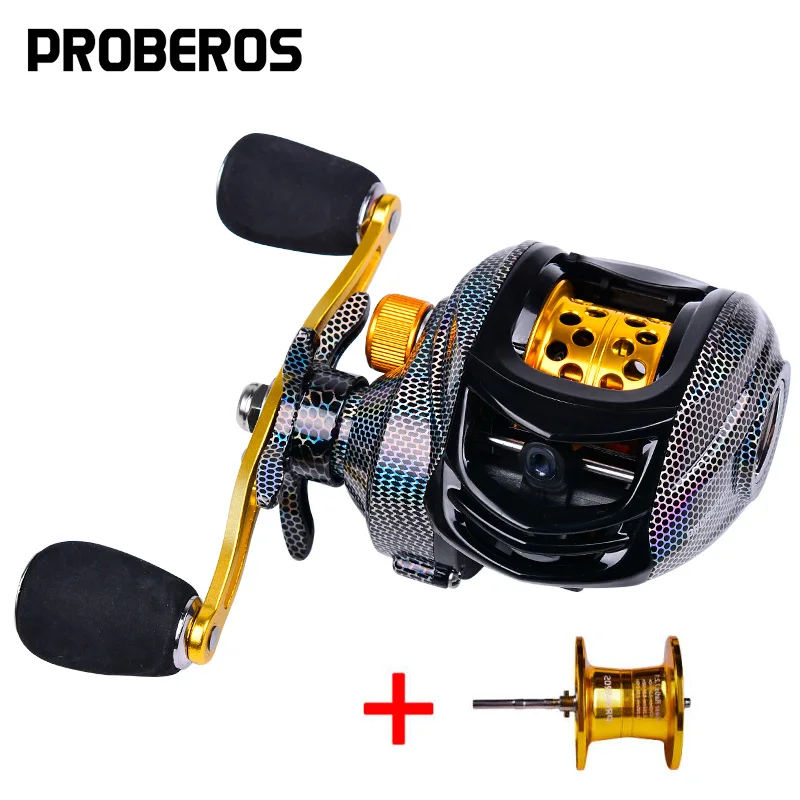 PROBEROS 7,2: 1 Baitcast carretes y kit de carrete láser tela de carbono colores señuelo carrete 3 + 1 rodamientos de bolas 200g carretes de pesca derecha e izquierda