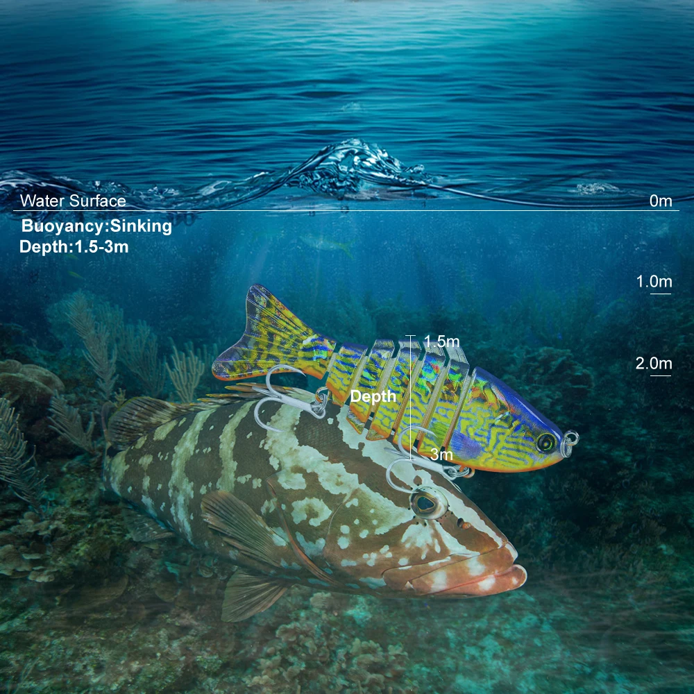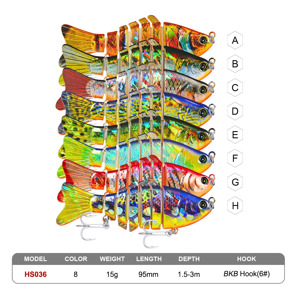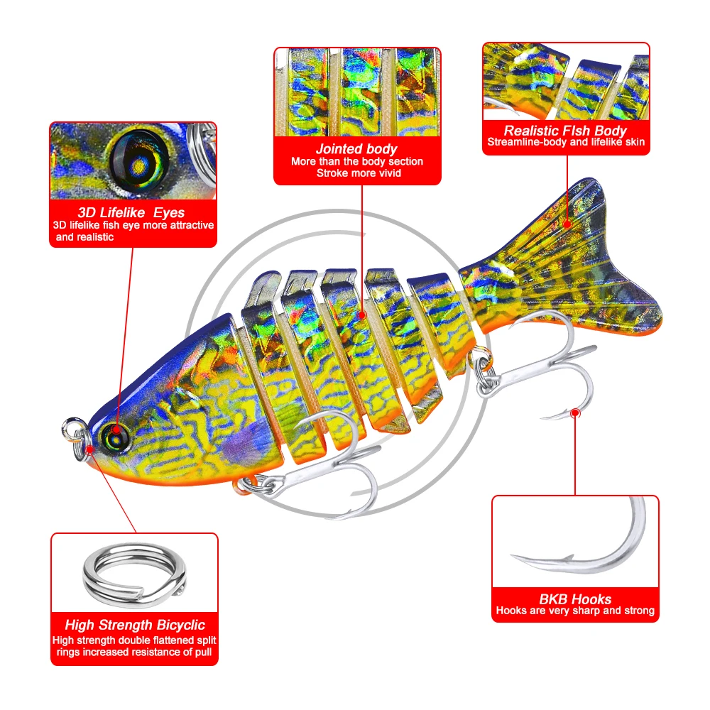 PROBEROS Swimbait 3D Laser Fishing bait 7 Secciones Fishing Lure 10cm-4 "/0,55 oz-15,5g 6 # BKBHOOK Fishing TackleColor:8 colores disponiblesPeso:0,55 oz-15,5g/PiezaLongitud:10cm-4 "/PiezaEmbalaje: con caja de embalaje al por menorGancho: #6 gancho triple de acero con alto contenido de carbono negro