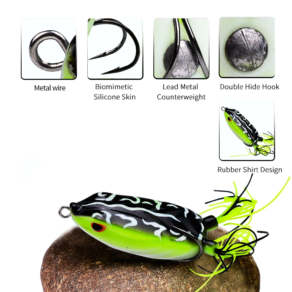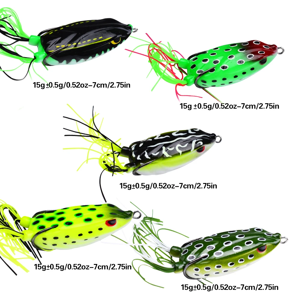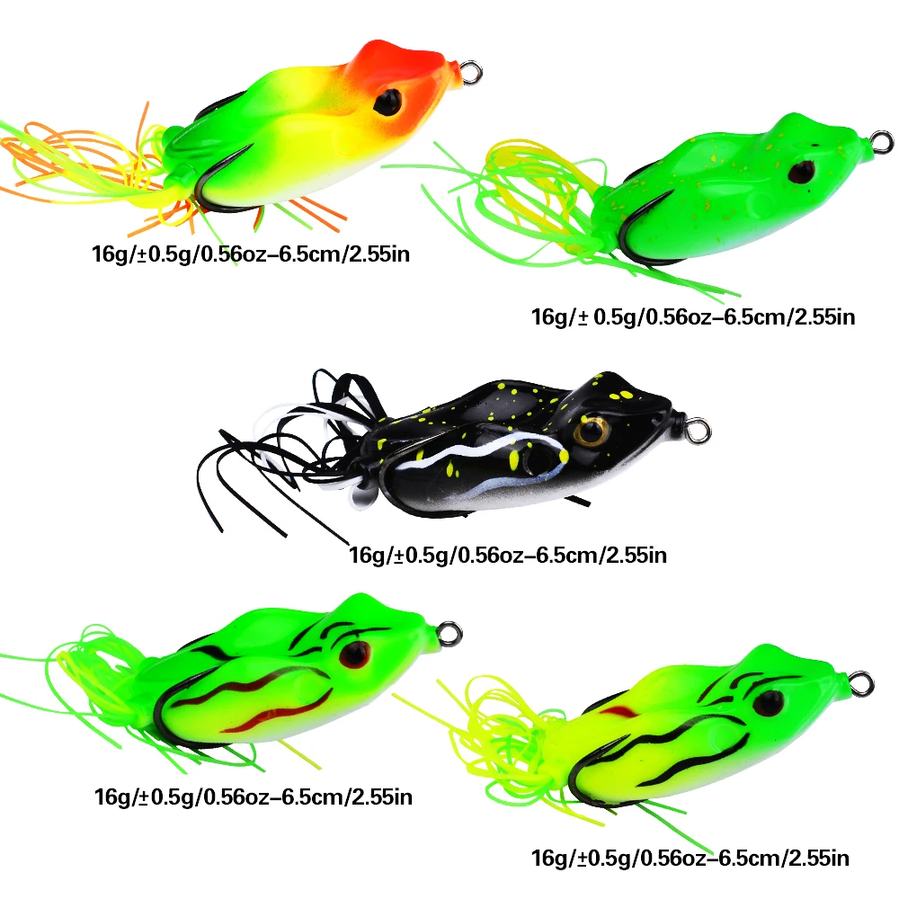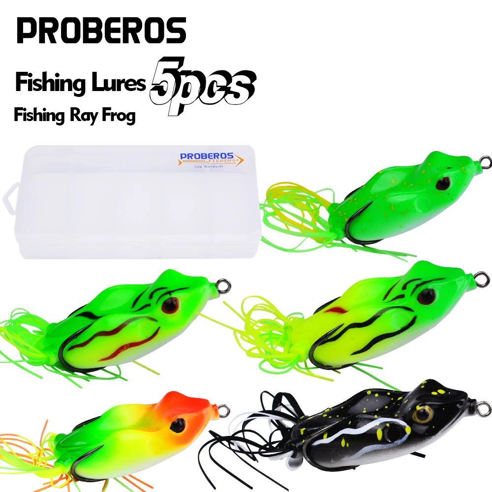 PROBEROS-cebo de pesca tipo RANA 5 piezas, cebo de pesca de plástico con gancho, biónico Artificial, 3D, ojo Thunderfrog, 65/70mm