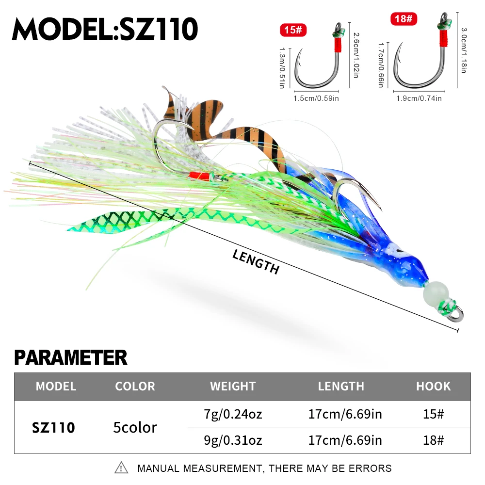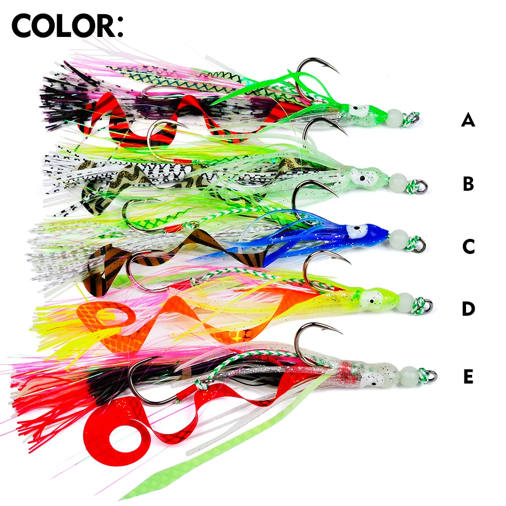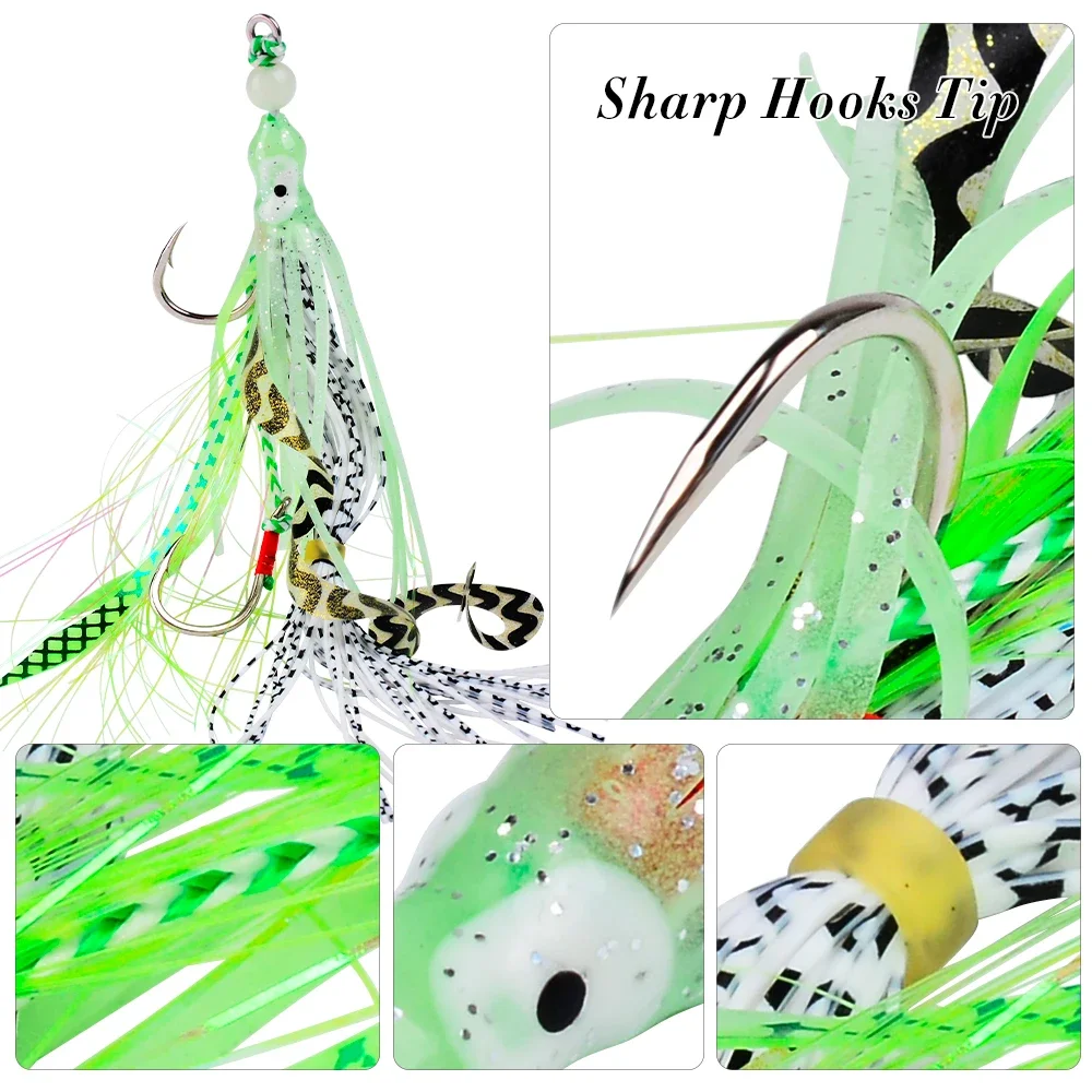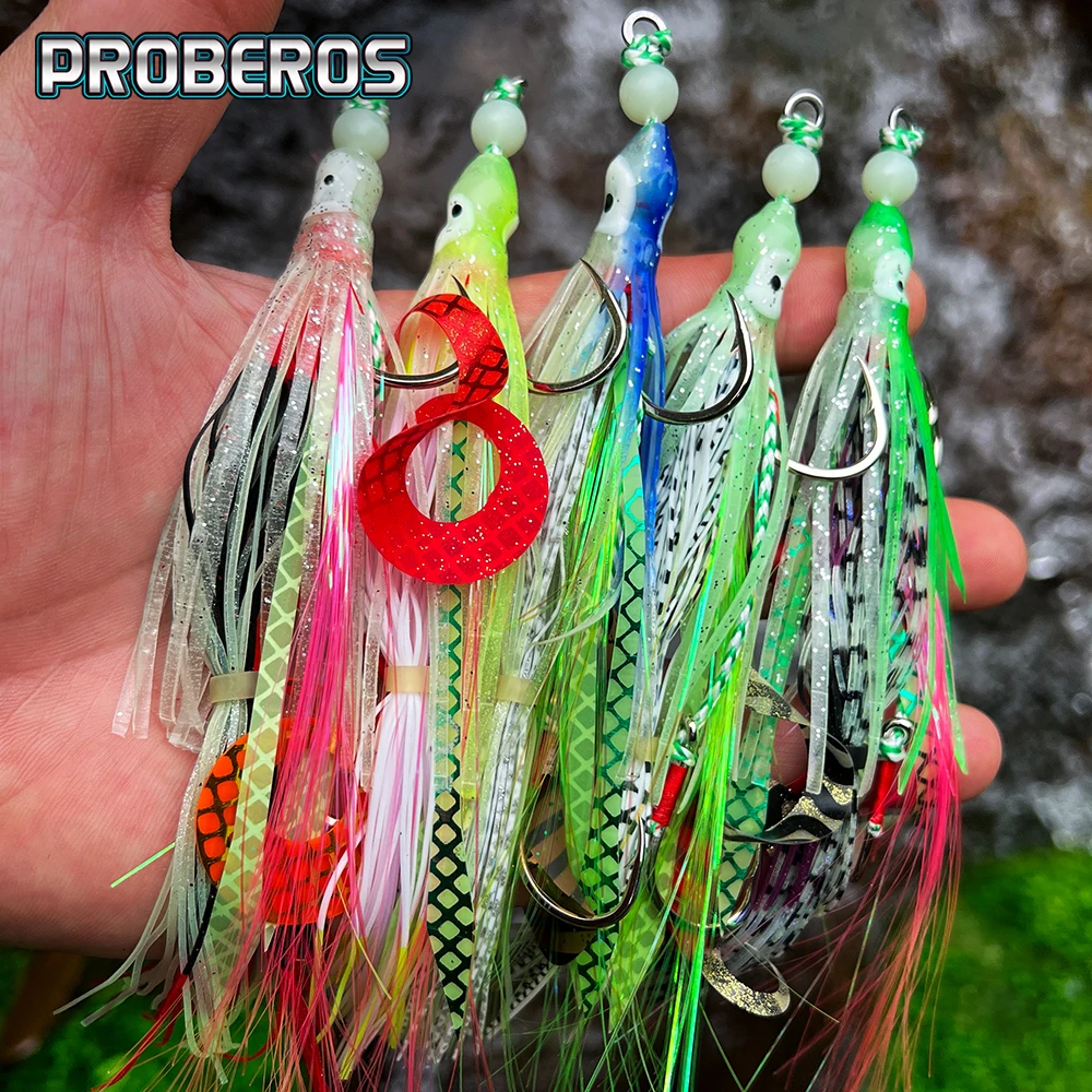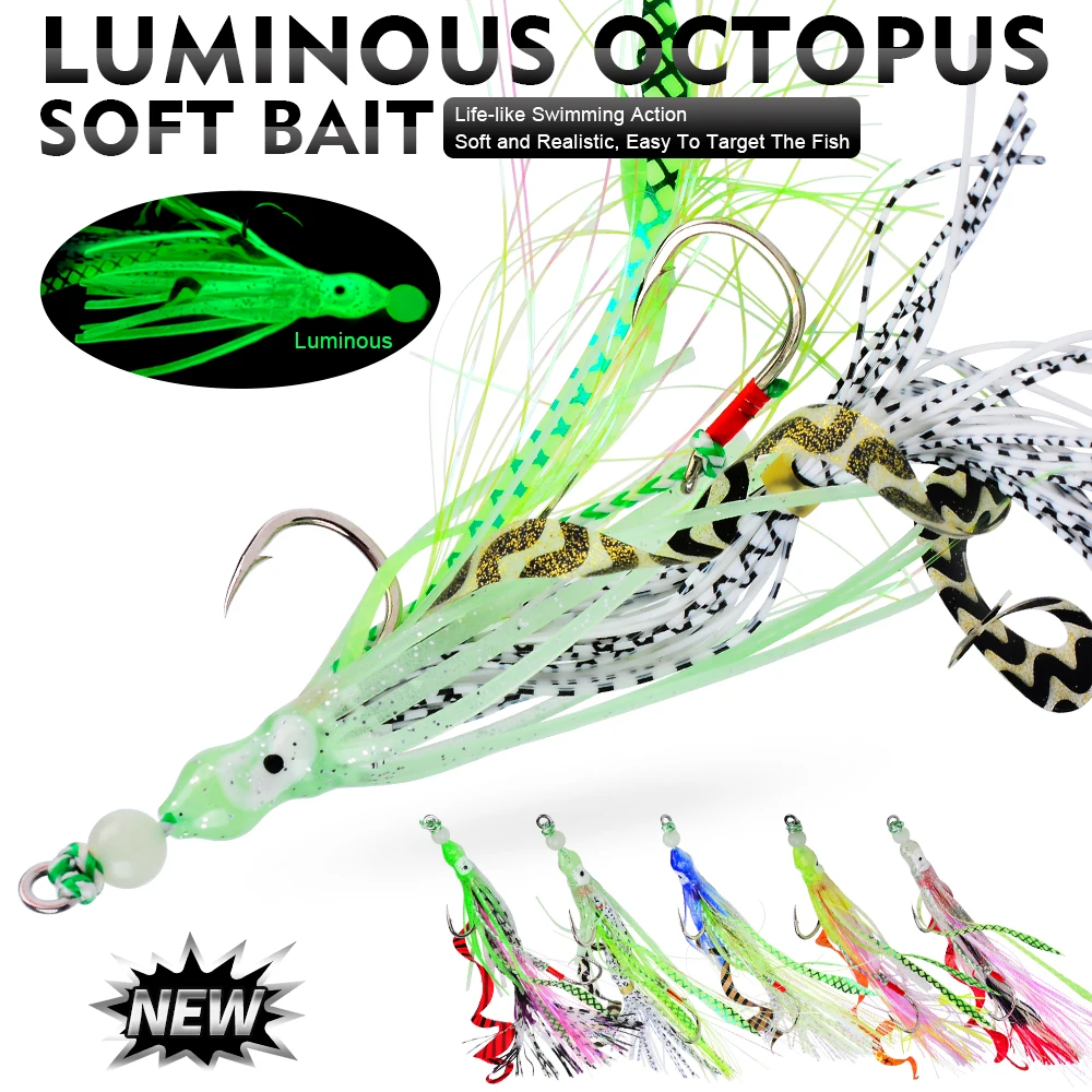 Proberos Cebos blandos de pulpo que brillan en la oscuridad con anzuelos de jigging, señuelos de calamar de silicona coloridos para pesca nocturna, pesca en el mar