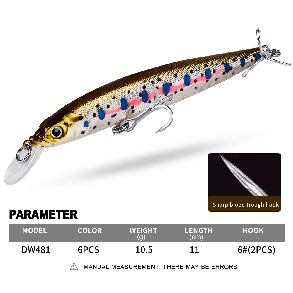PROBEROS-cebos duros artificiales Wobblers, Señuelos de Pesca de fundición, aparejos de pesca de 11cm-10,5g, 6 uds.