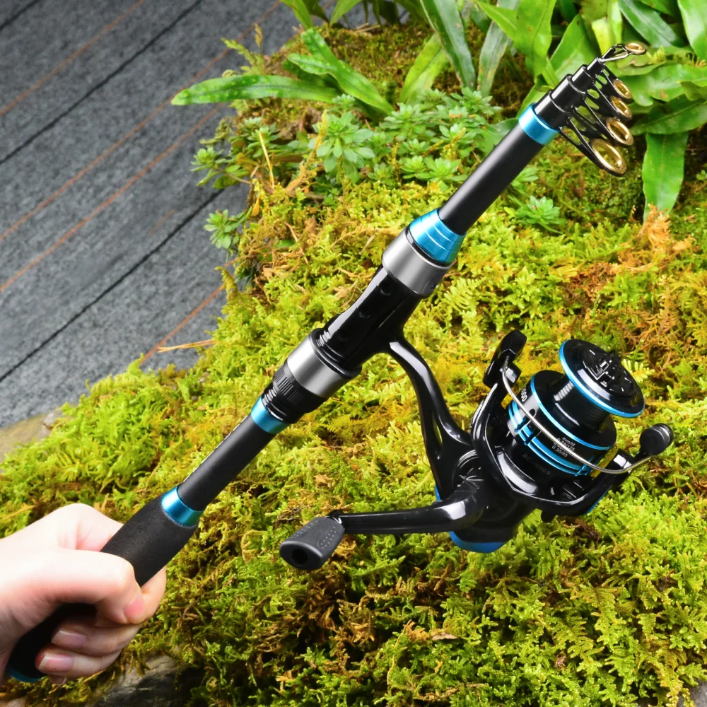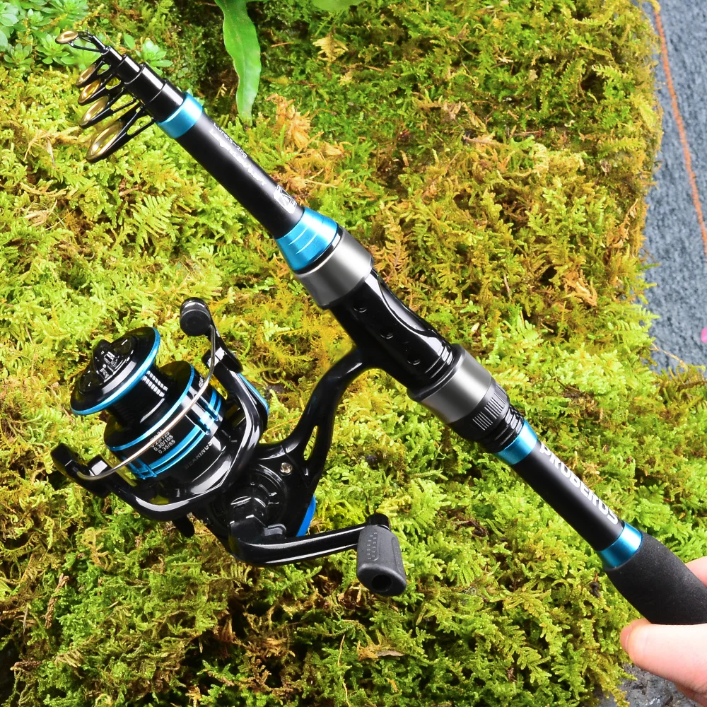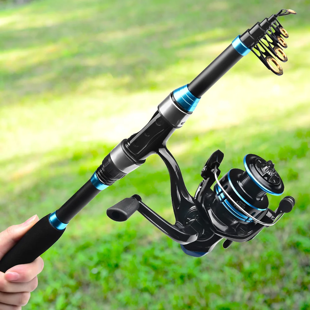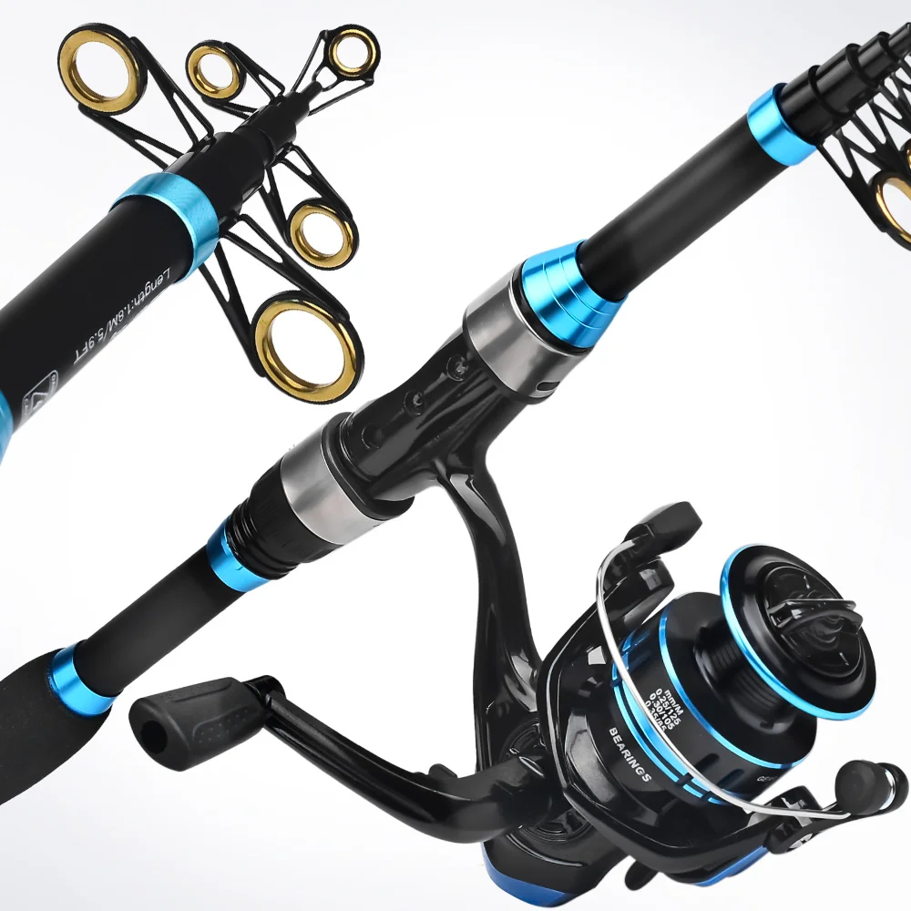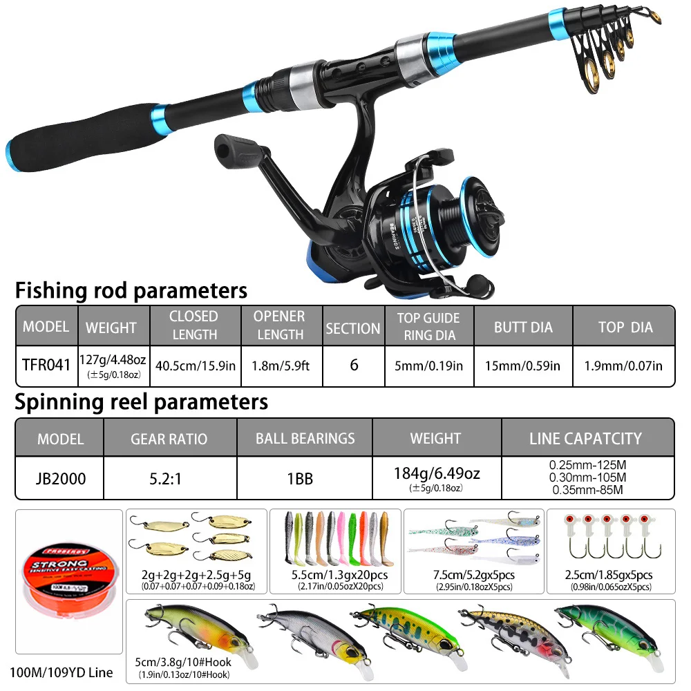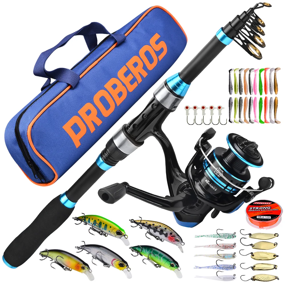 PROBEROS-Juego de caña de pescar, kit completo con caña de pescar telescópica y carrete giratorio, anzuelos de viaje, 1,8 M/5,9 pies