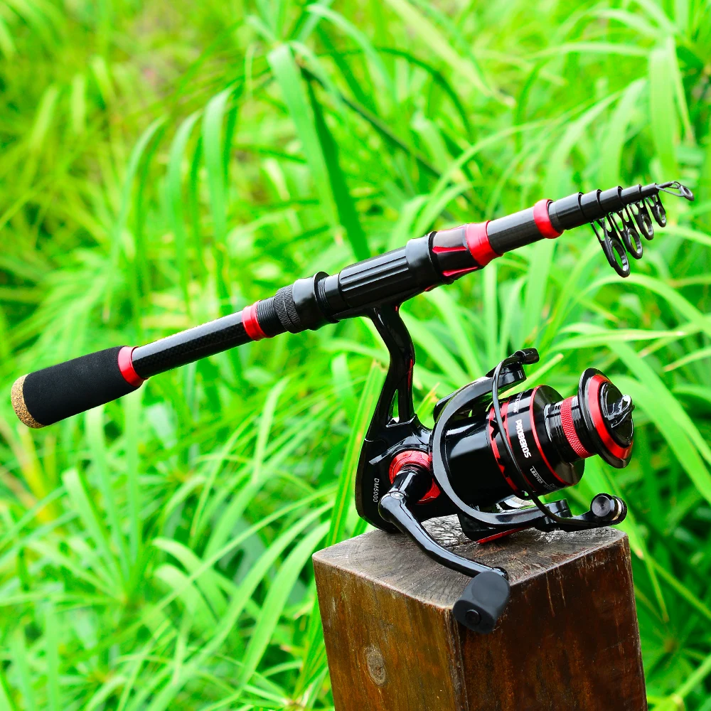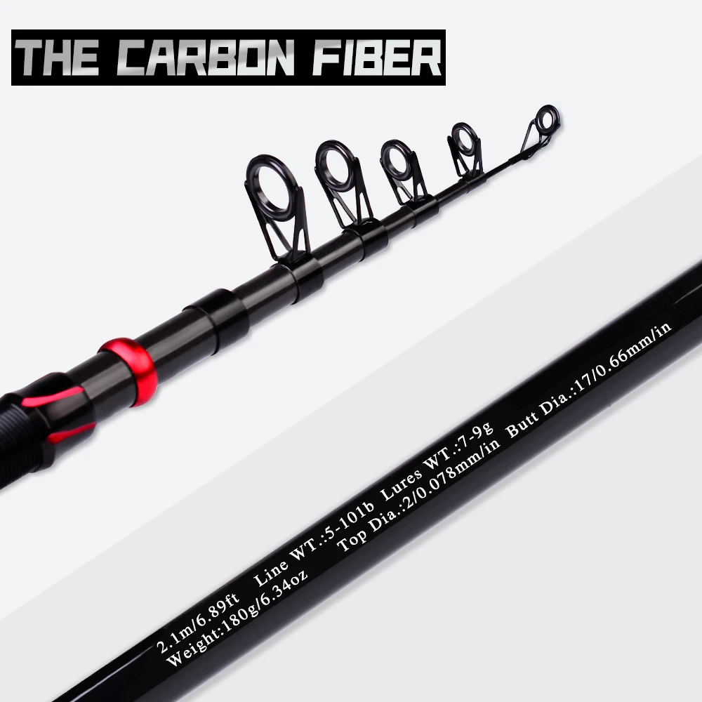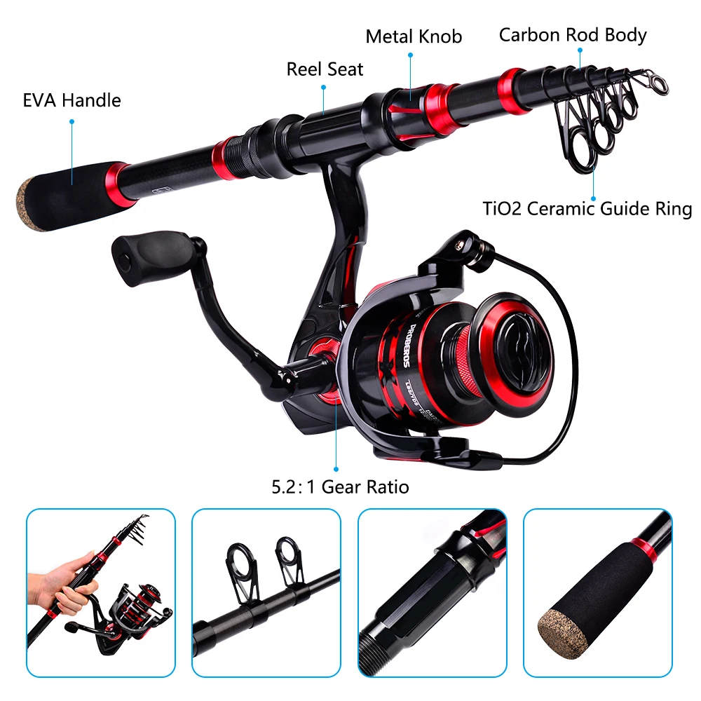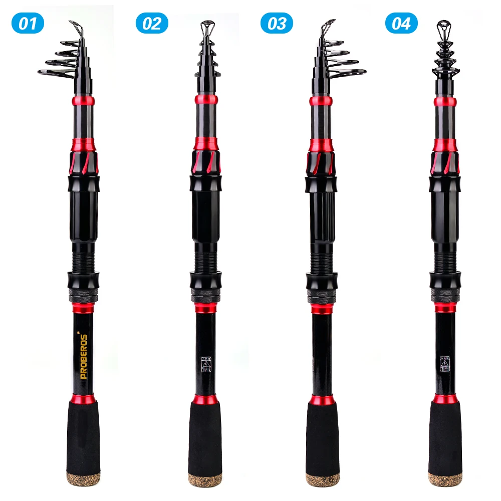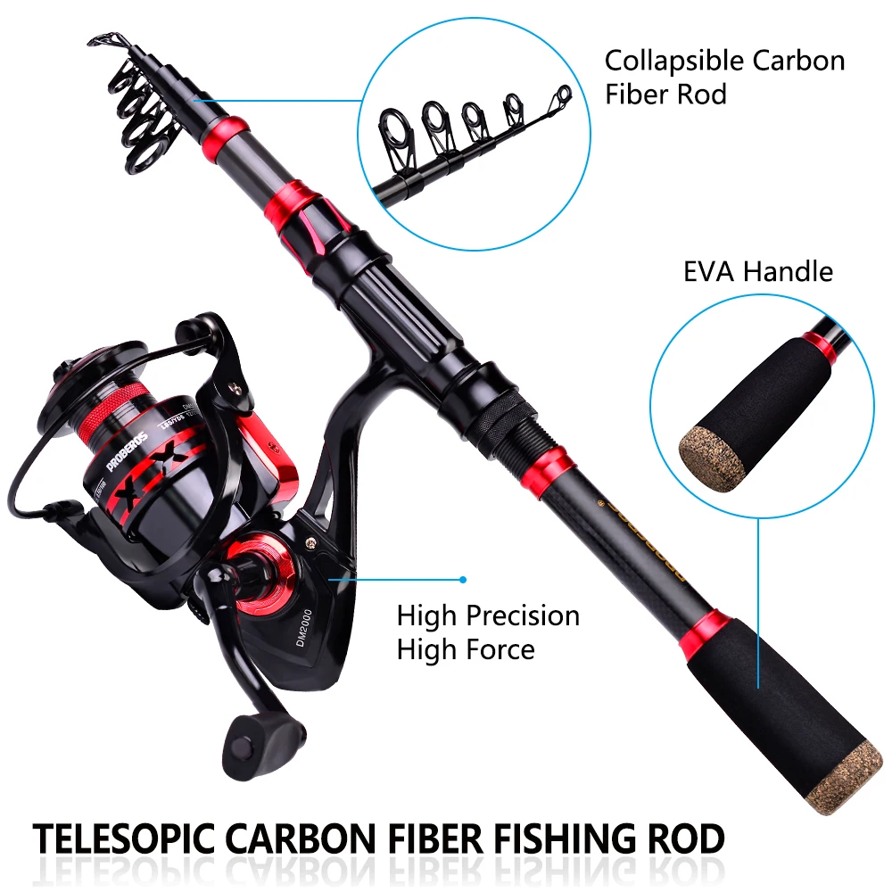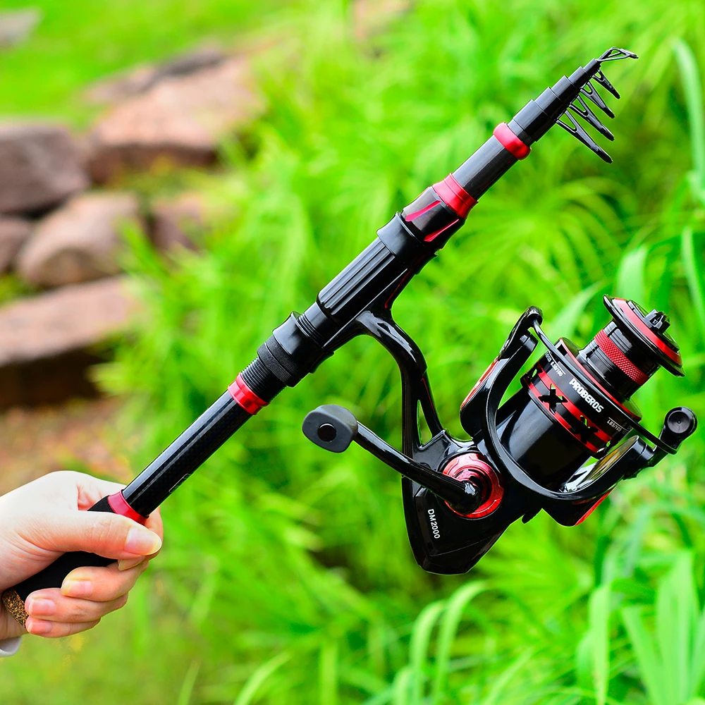 Kit de carrete y varilla telescópica Proberos 5,2: 1 carrete giratorio de relación de engranaje 2,1 m caña de pescar de fibra de carbono conjunto de ganchos de línea de cebos