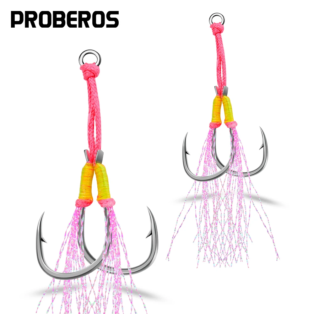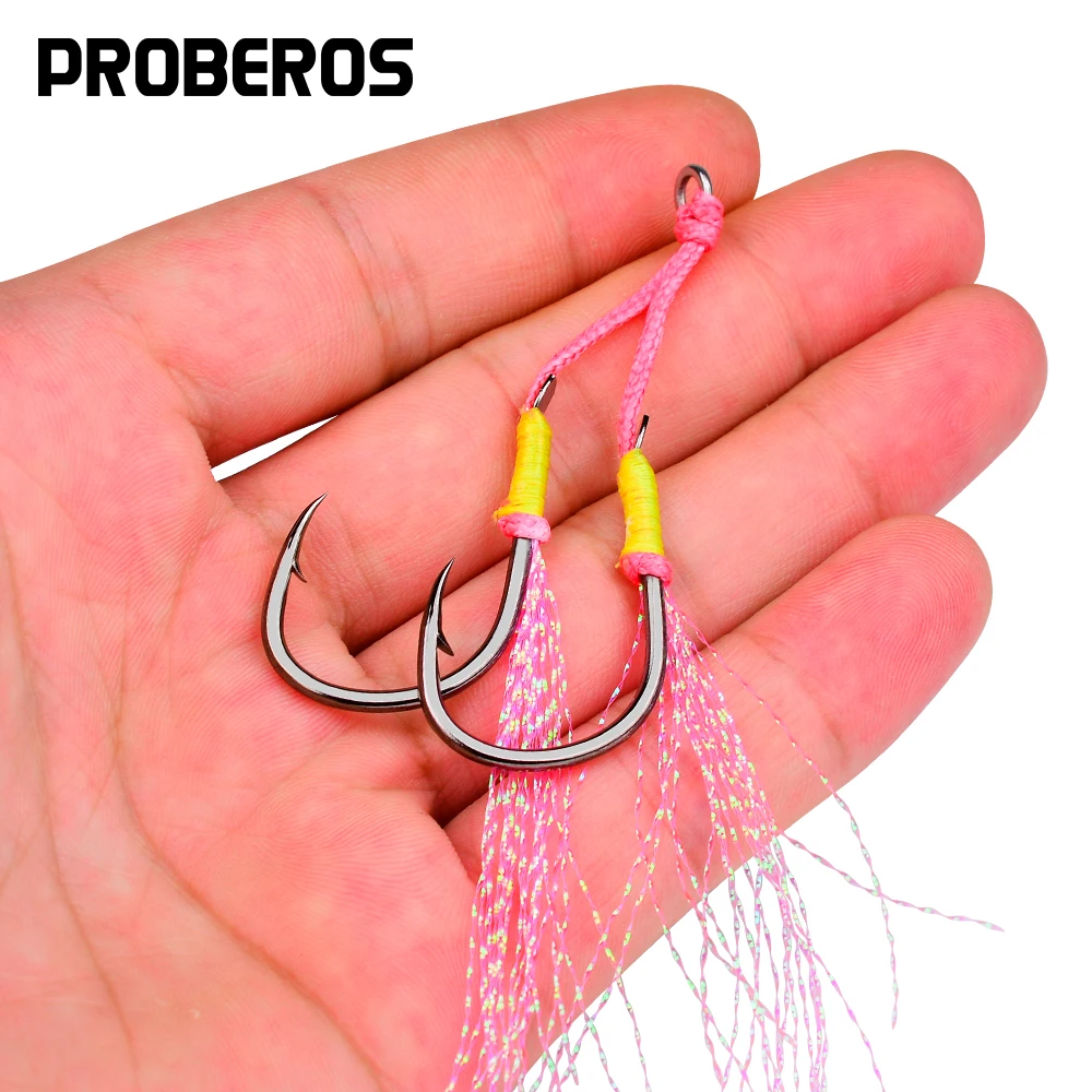 PROBEROS 5 unids/lote nuevo estilo atado con alambre brillante Rosa Placa de hierro doble gancho negro Acero de alto carbono anzuelo al por mayor