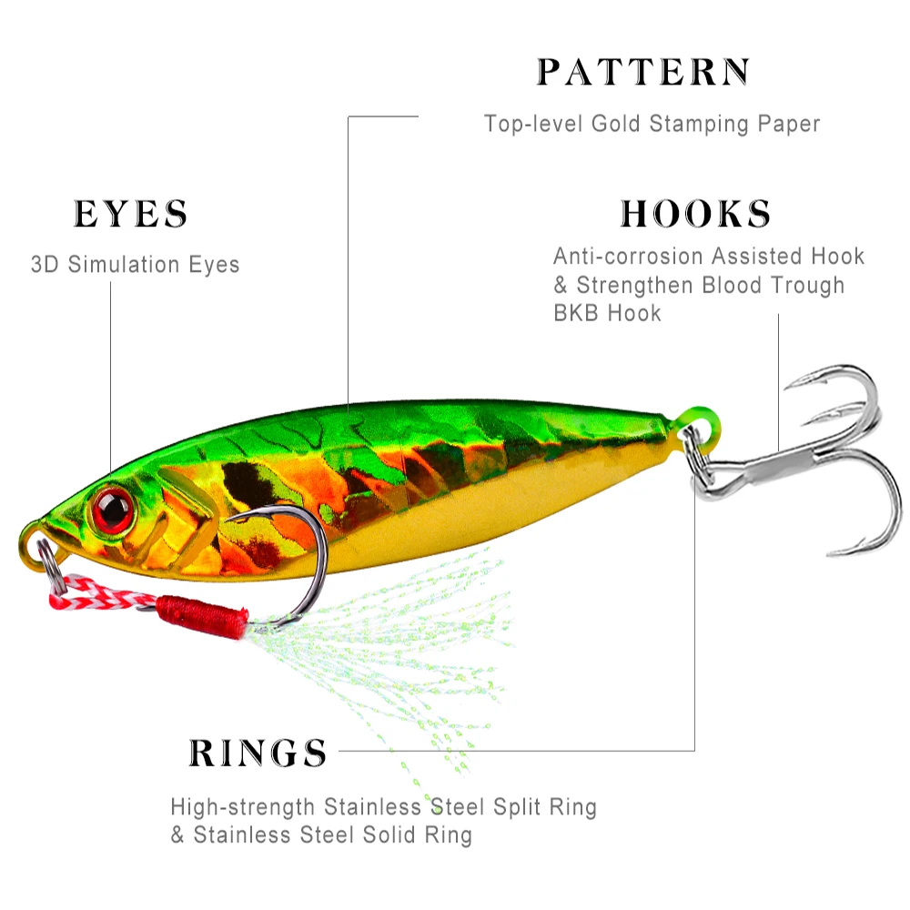 PROBEROS-Plantilla de Metal VIB de fundición larga con ganchos dobles, 14g-30g,Ideal para pesca fresca en agua salada, tasa de captura mejorada, cebo biónico, 1 unidad