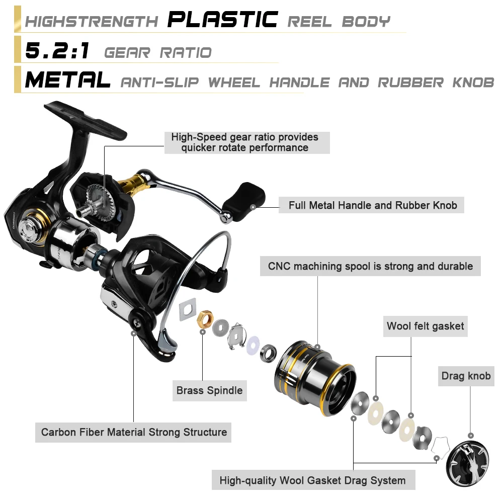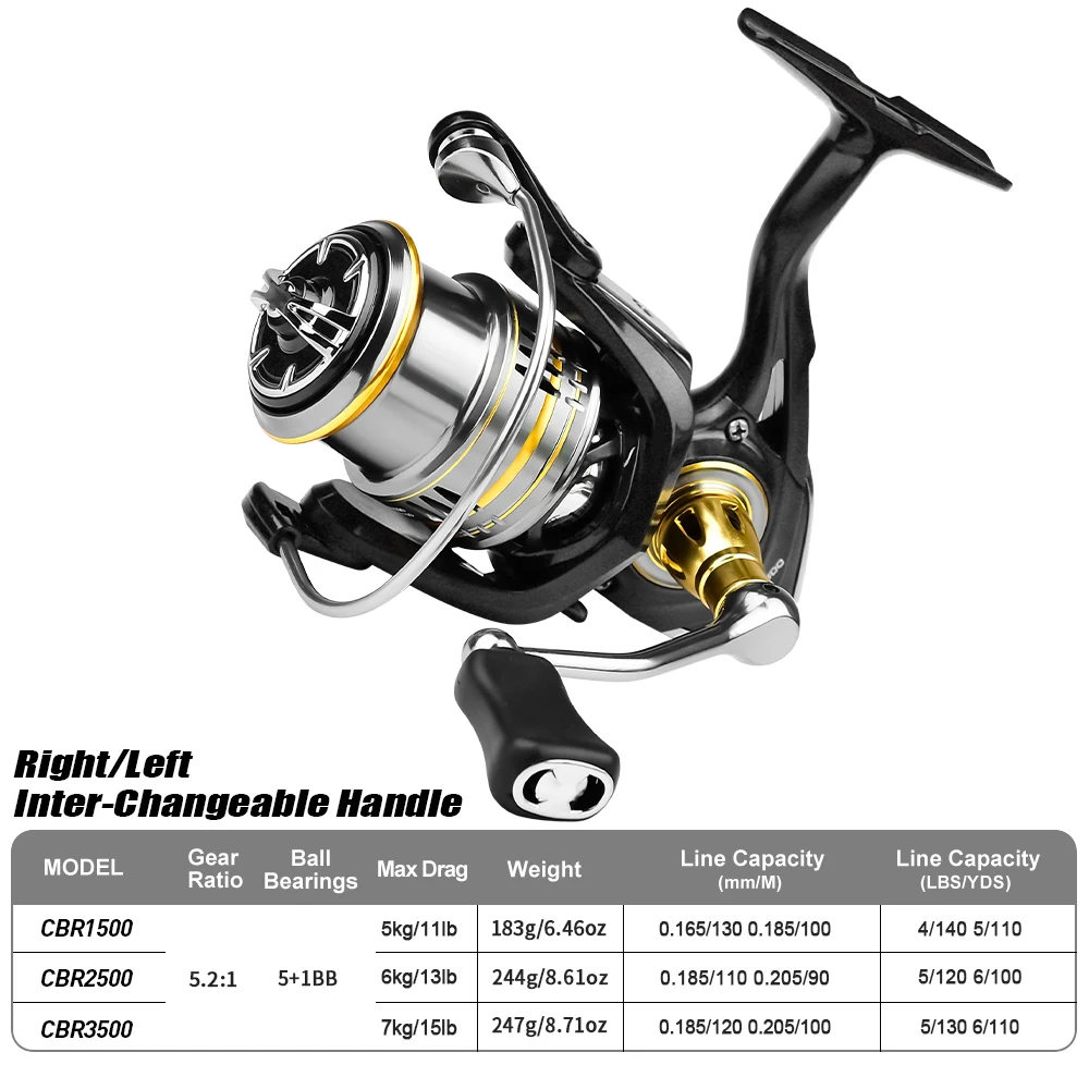 PROBEROS-rueda giratoria de fibra de carbono 5,2: 1,5 1BB, husillo de aleación de aluminio para pesca en mar, agua dulce y salada