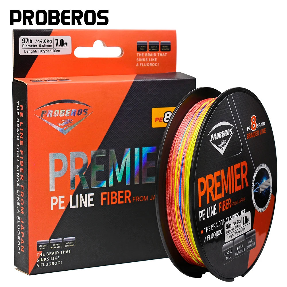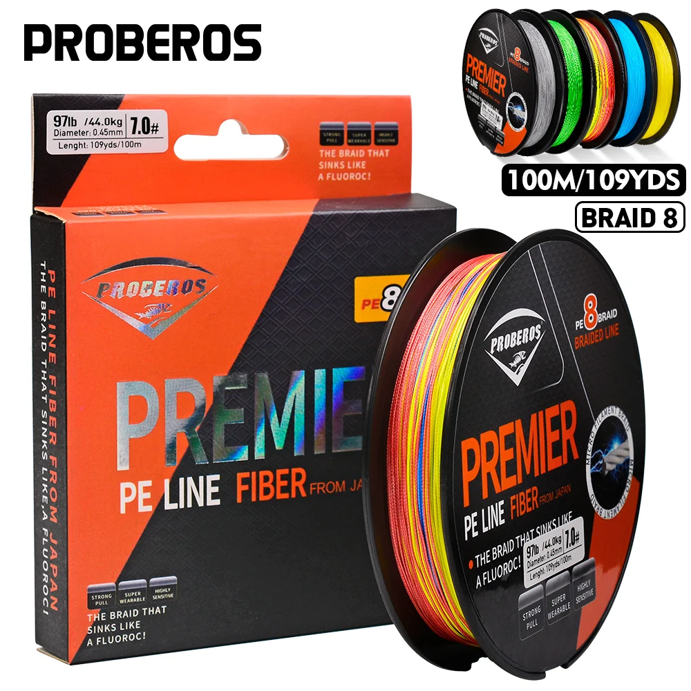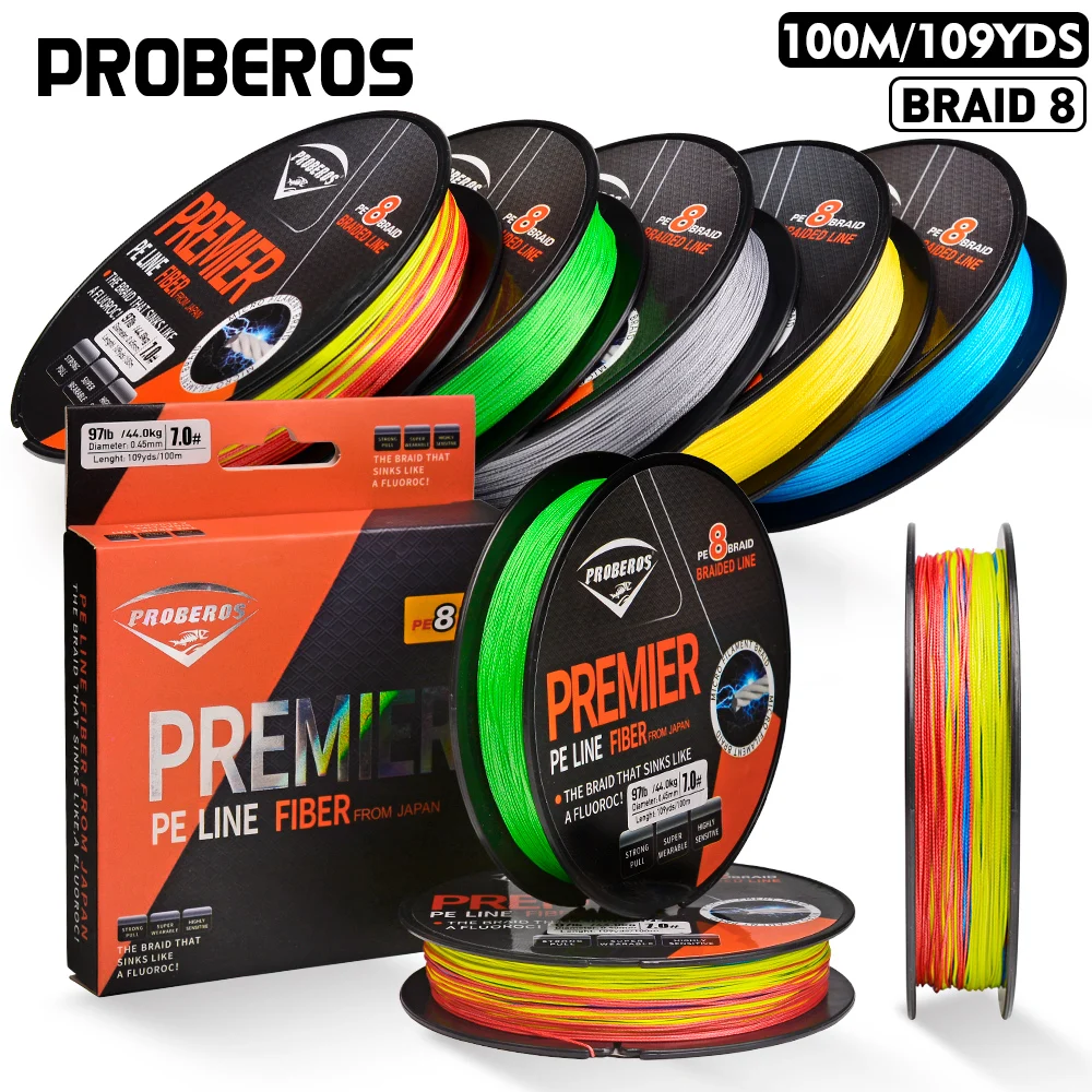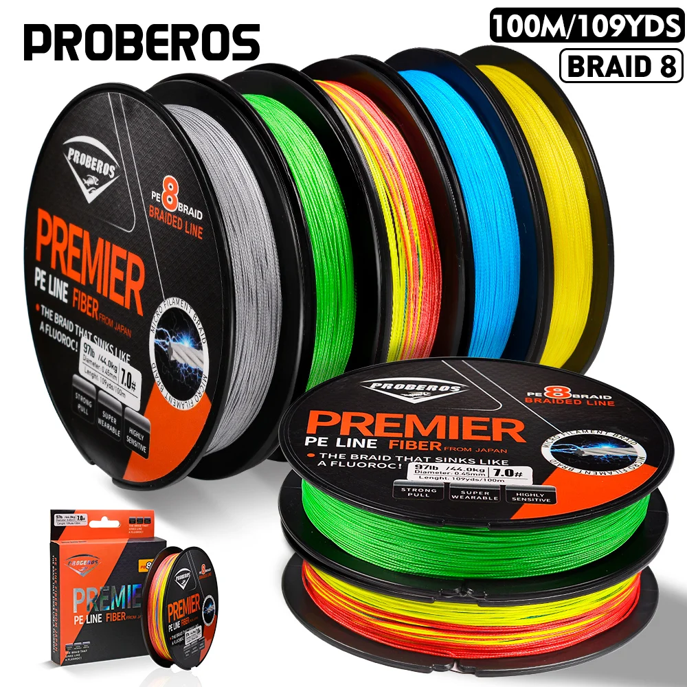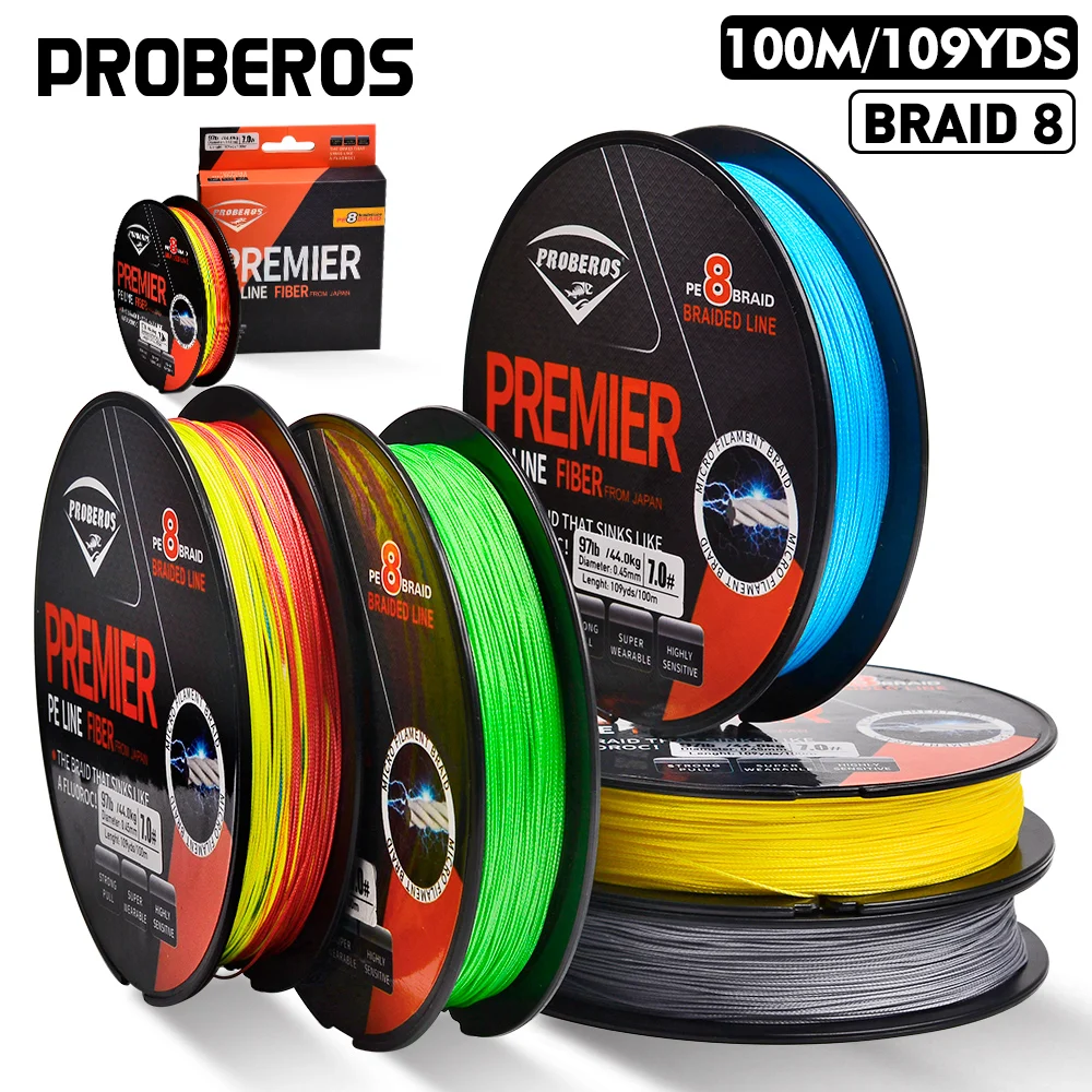 PROBEROS 100M línea de pesca 8 tejidos verde/gris/azul/amarillo PE alambre multifilamento fuerte línea hebras trenzada línea de pesca