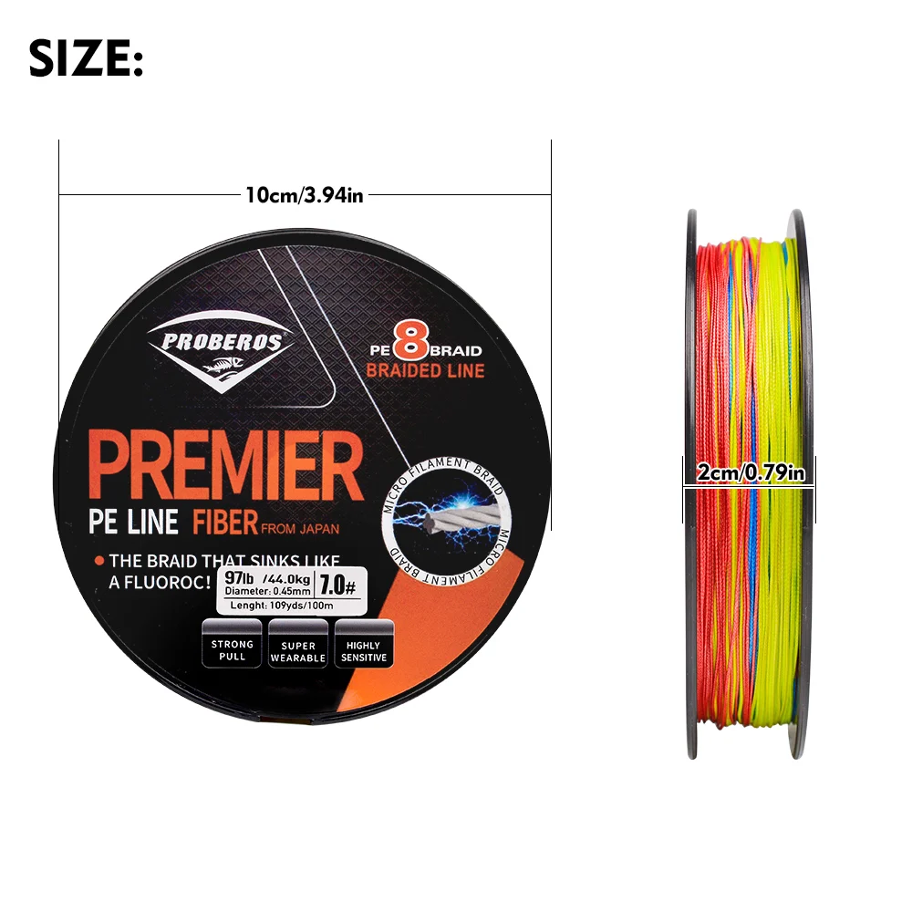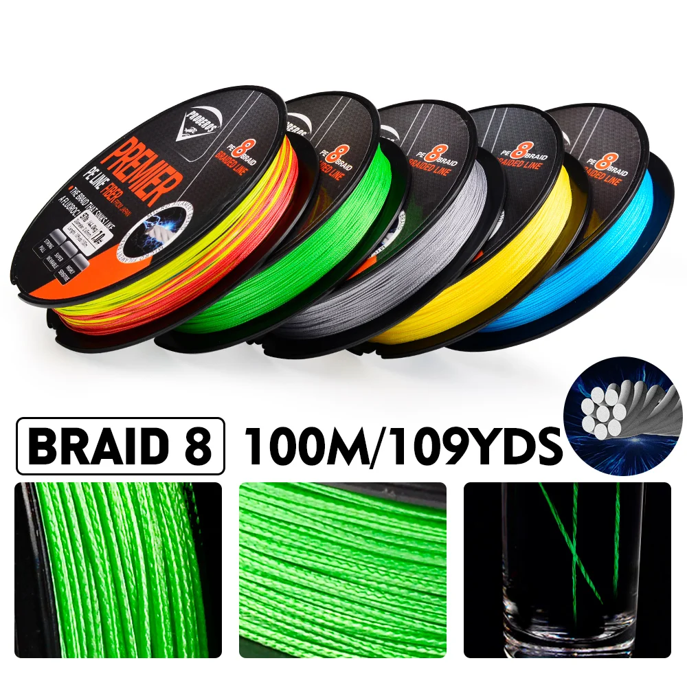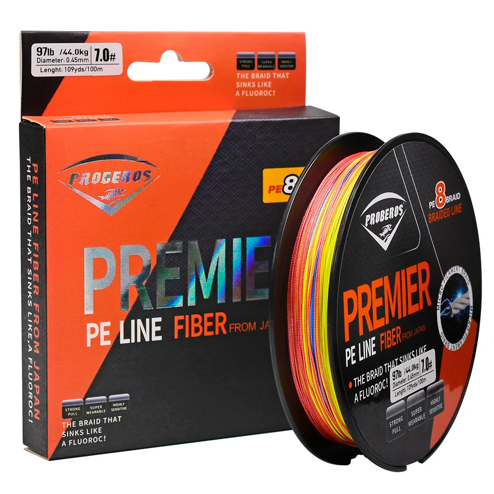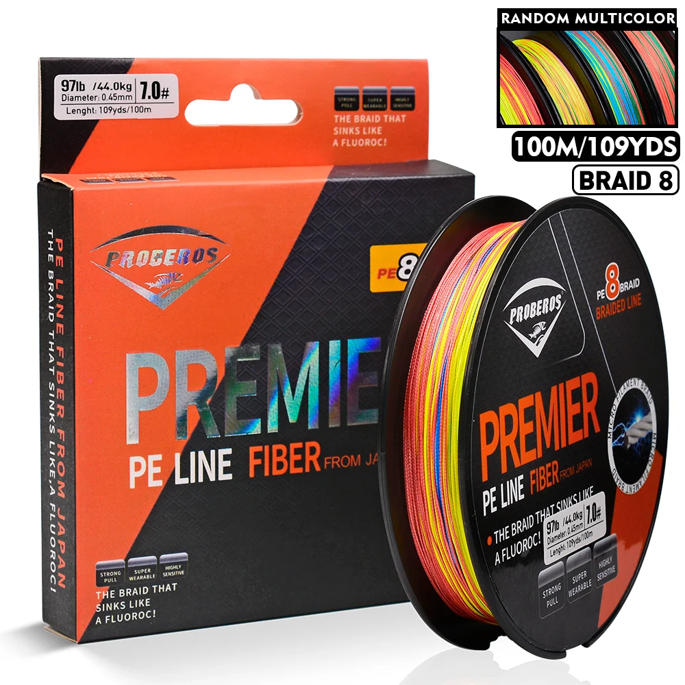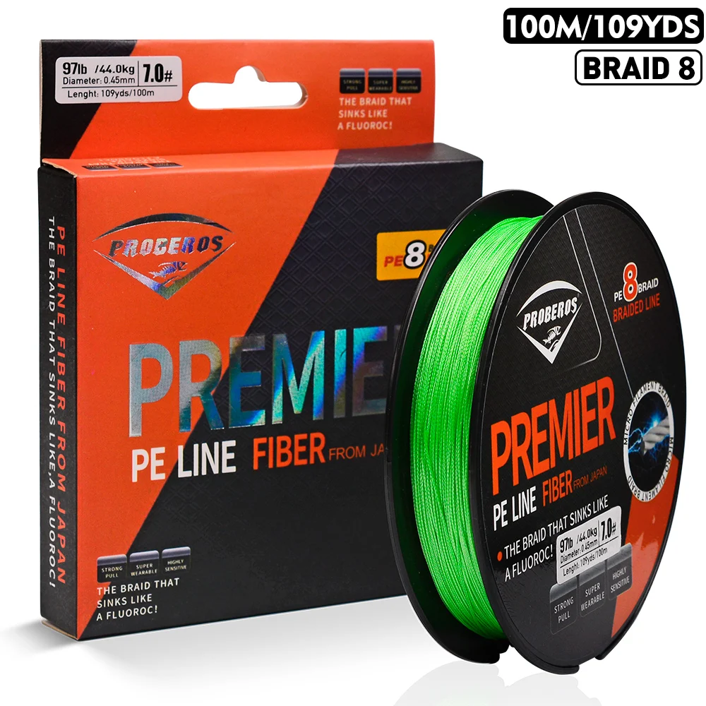 PROBEROS 100M línea de pesca 8 tejidos verde/gris/azul/amarillo PE alambre multifilamento fuerte línea hebras trenzada línea de pesca