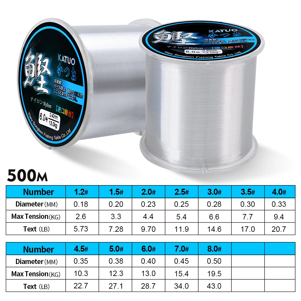 PROBEROS-sedal de pesca de nailon de 500m, cuerda de pesca líder, alambre de monofilamento duradero, aparejos de pesca de lubina de roca de mar/agua dulce, 1,2-8,0 #
