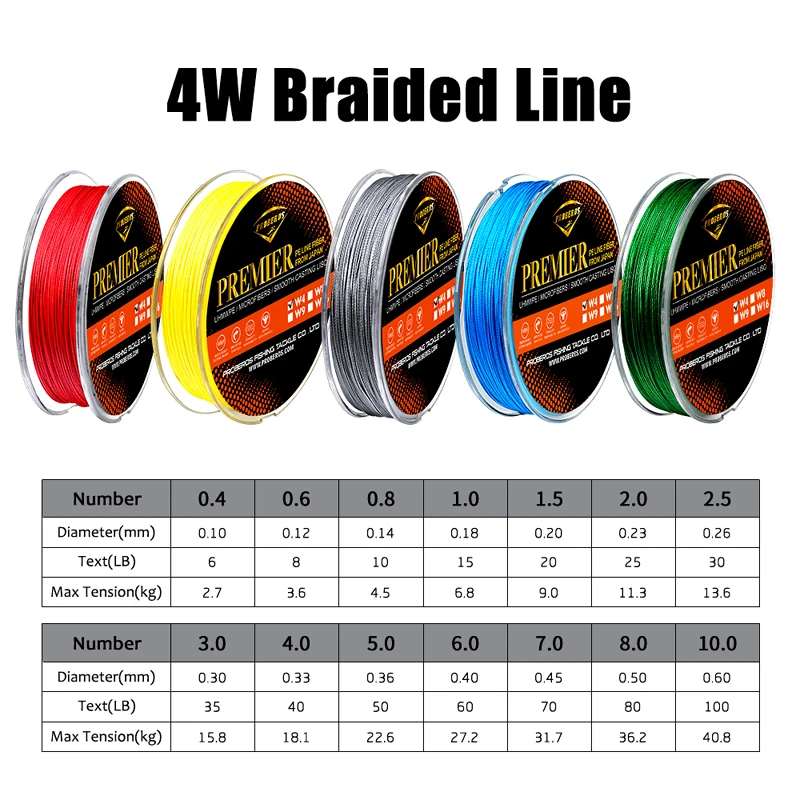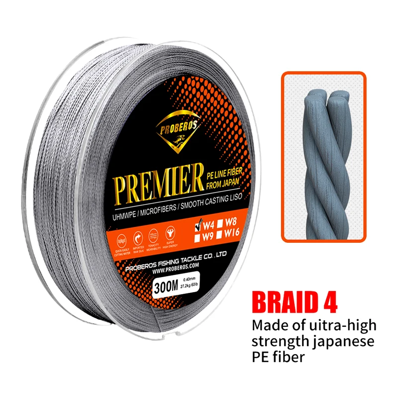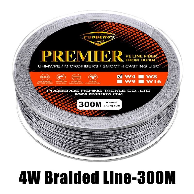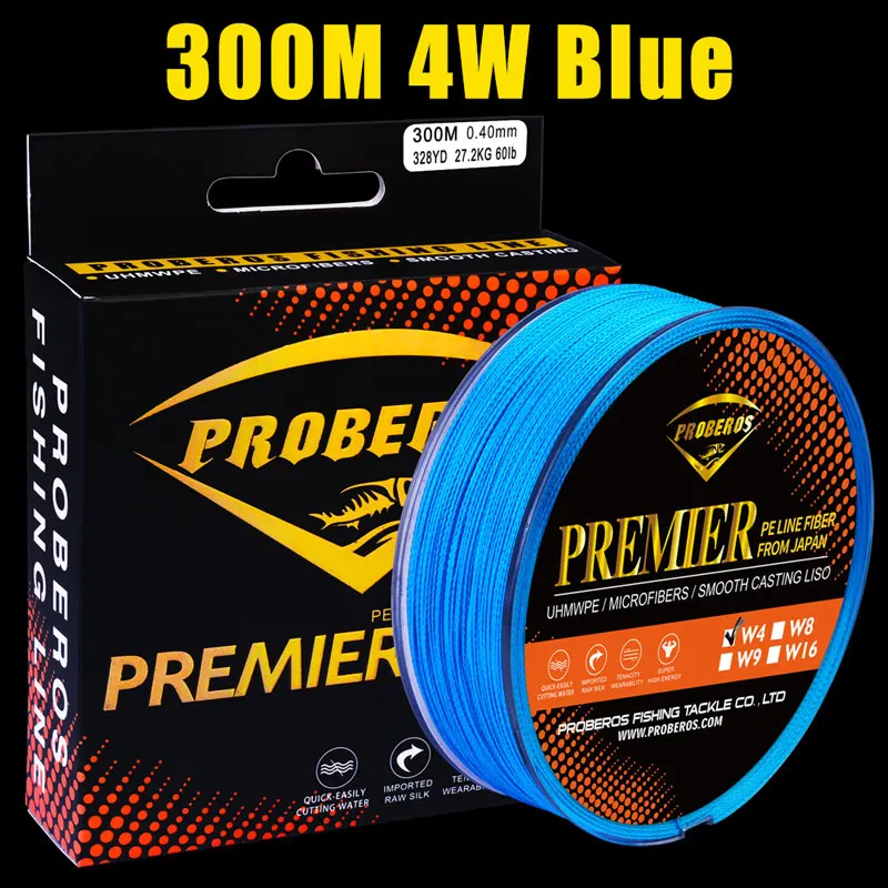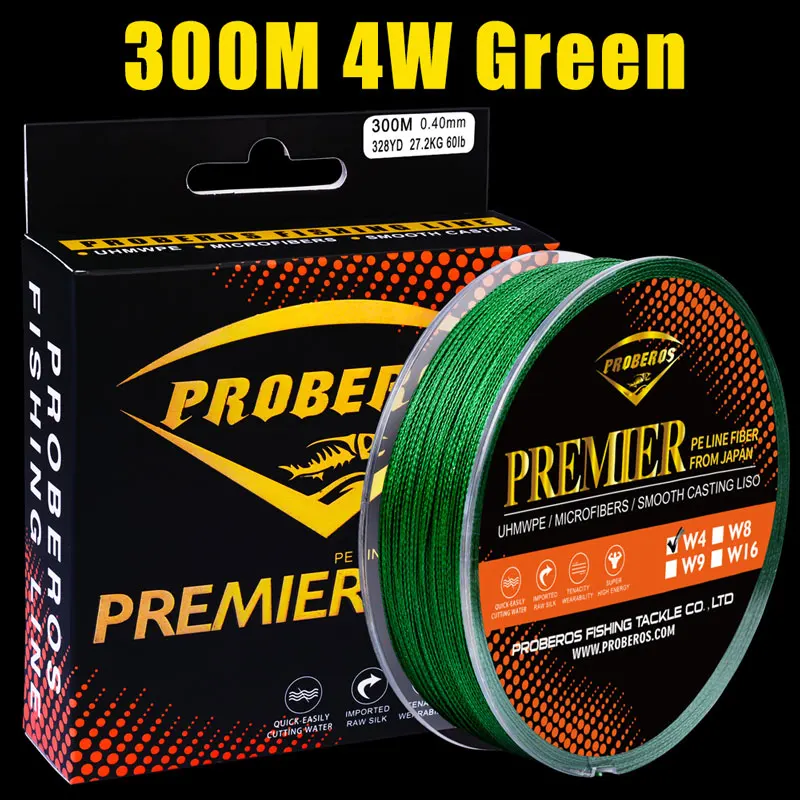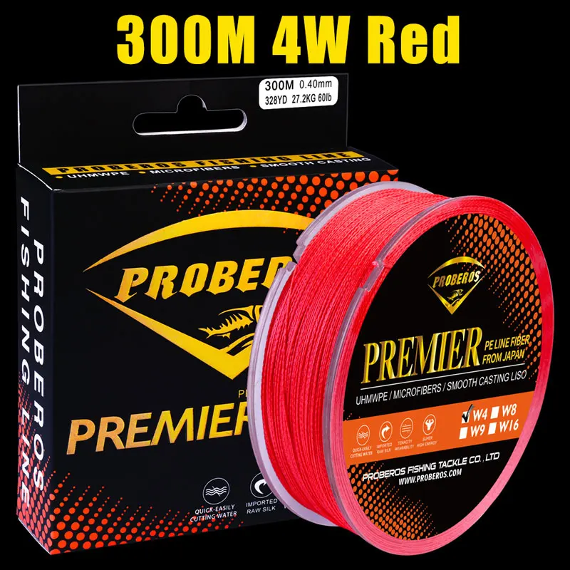 PROBEROS-sedal de pesca trenzado, 300M, rojo/Verde/gris/amarillo/azul, 4 tejidos, 6LB-100LB, PE