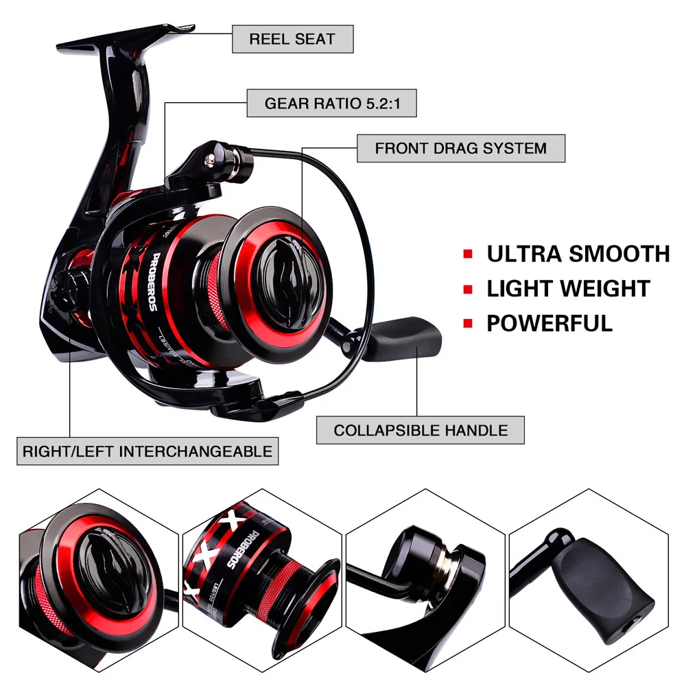 Opción 6: caña giratoria + rueda giratoria + todas las herramientas de pesca