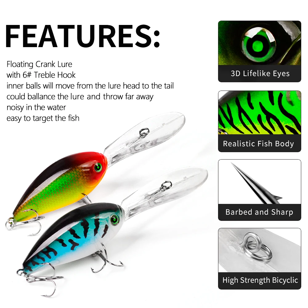 PROBEROS-señuelo flotante biónico, cebo duro Wobbler de plástico Artificial, aparejos de pesca, 6 piezas, 4,52 pulgadas/11,5 cm, 17,5g/0,61 oz