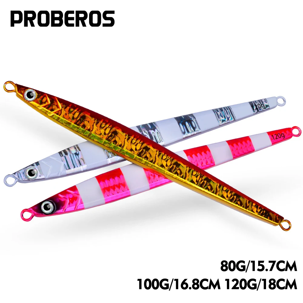 PROBEROS-señuelo de Metal para pesca Jigging, cebo Artificial duro, Wobbler, Wobbler, pesca en el mar, 80g-100g-120g, 1 unidad