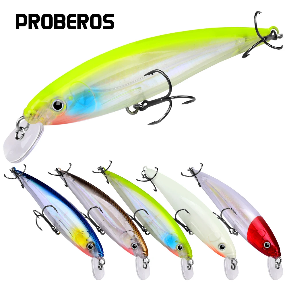 PROBEROS-señuelo de pececillo biónico flotante, cebo duro de plástico de fundición larga con anzuelo triple, accesorio de pesca, 5 piezas, 6,3 pulgadas/0,41 oz