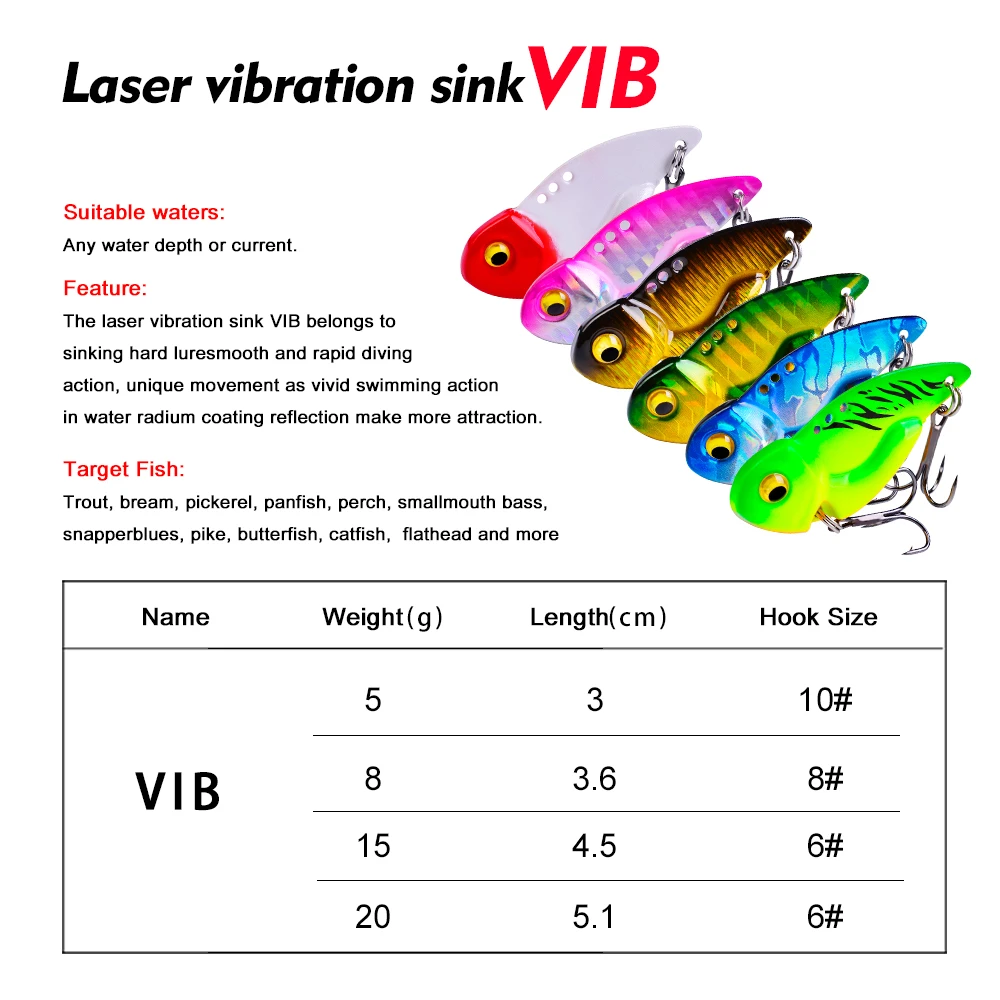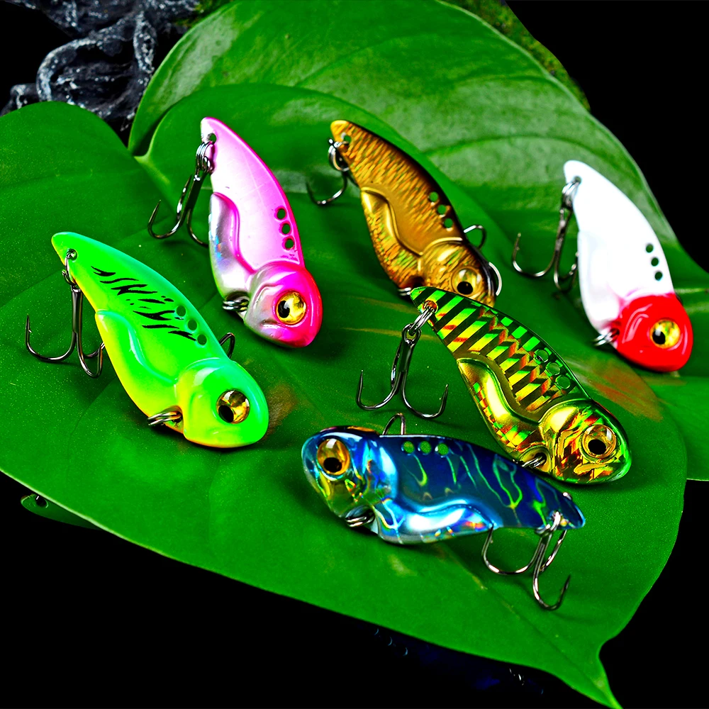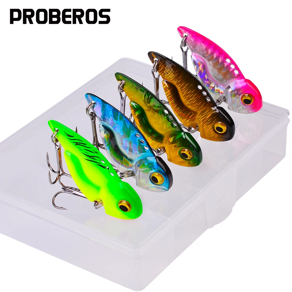 Proberos-señuelo de pesca de 5g-8g-14g-20G, señuelo de cuchara grande con anzuelos, de 6 colores cebo de pesca, cebo duro grande VIB, 5 uds. Por lote
