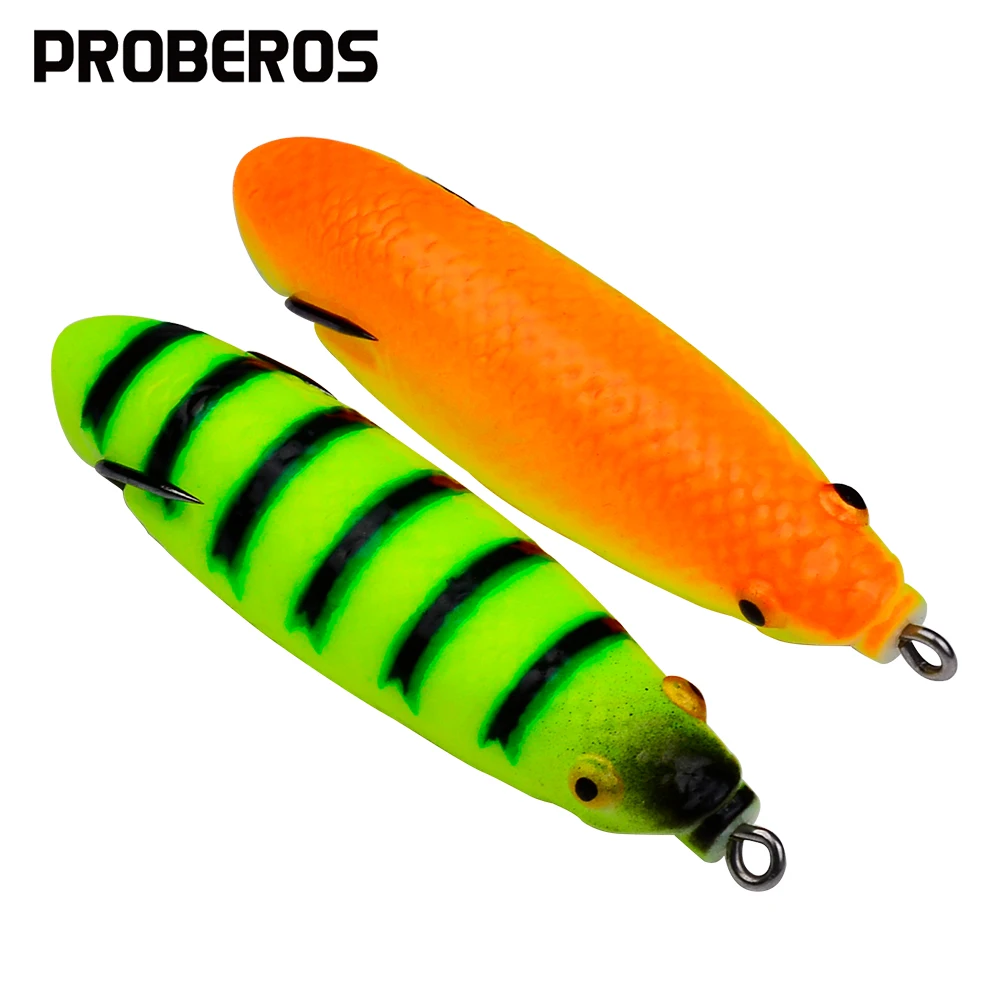 PROBEROS-señuelo de pesca flotante, 1 piezas, 9,5 cm-17g, cebo de rana suave, Wobbler de goma Artificial, Swimbait con doble gancho