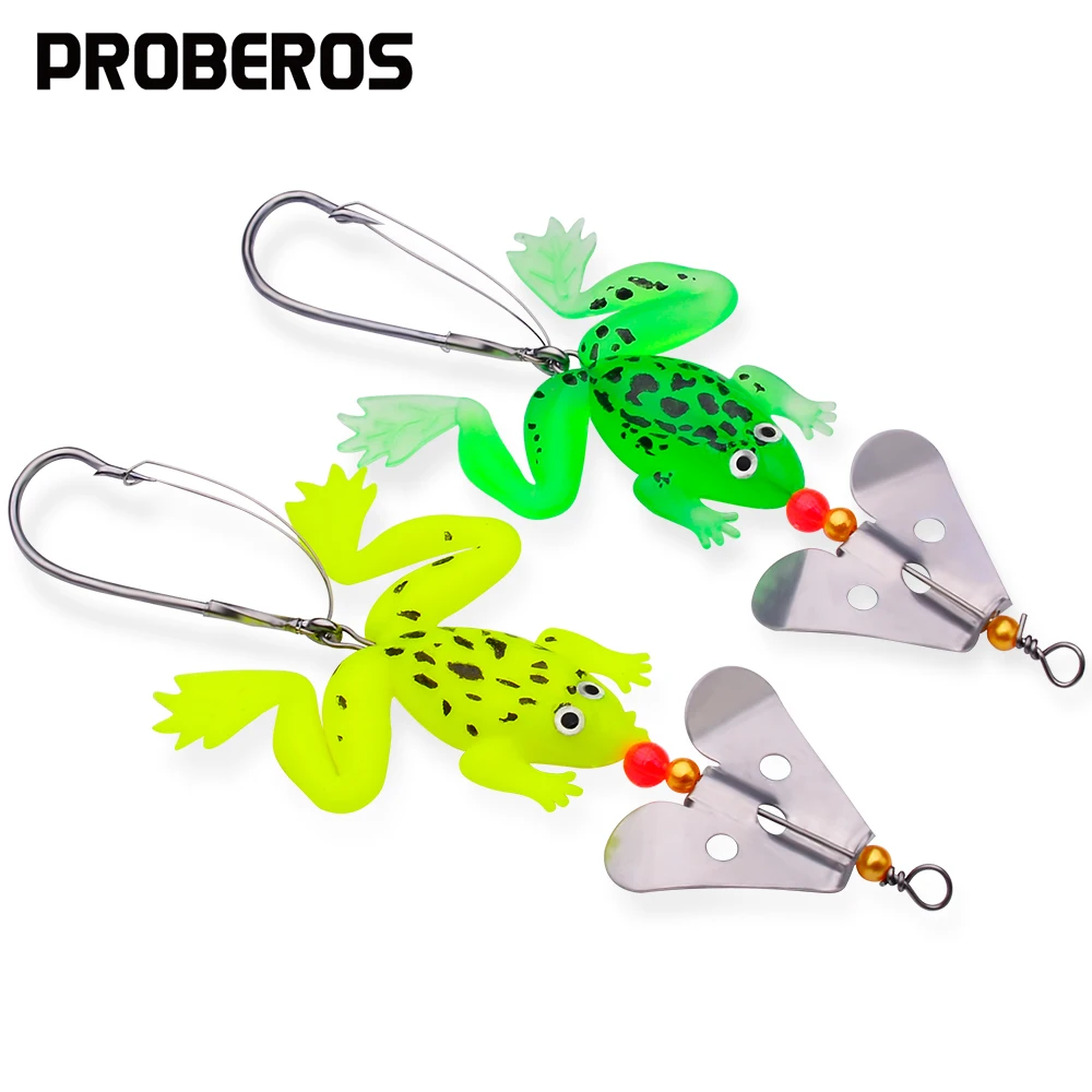 PROBEROS-señuelo de Pesca de rana blanda, cebo Artificial de silicona, Wobblers, Swimming Frog con Spinner Isca, 10cm, 1PX/4 piezas