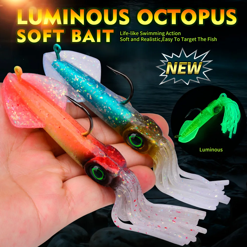 Proberos-señuelo suave de calamar luminoso, anzuelo de plomo pesado, Swimbait de agua dulce y salada para curricán, salmón, lubina, trucha, 1 ud.