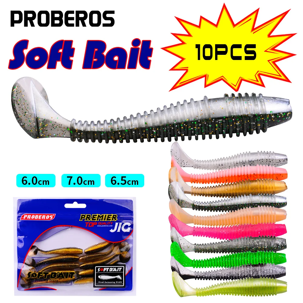 PROBEROS-SEÑUELOS blandos de pesca, cebos de silicona para Sábalo, Swimbait, Wobblers artificiales para trucha y pez gato, 60-70-75mm, 10 Uds.