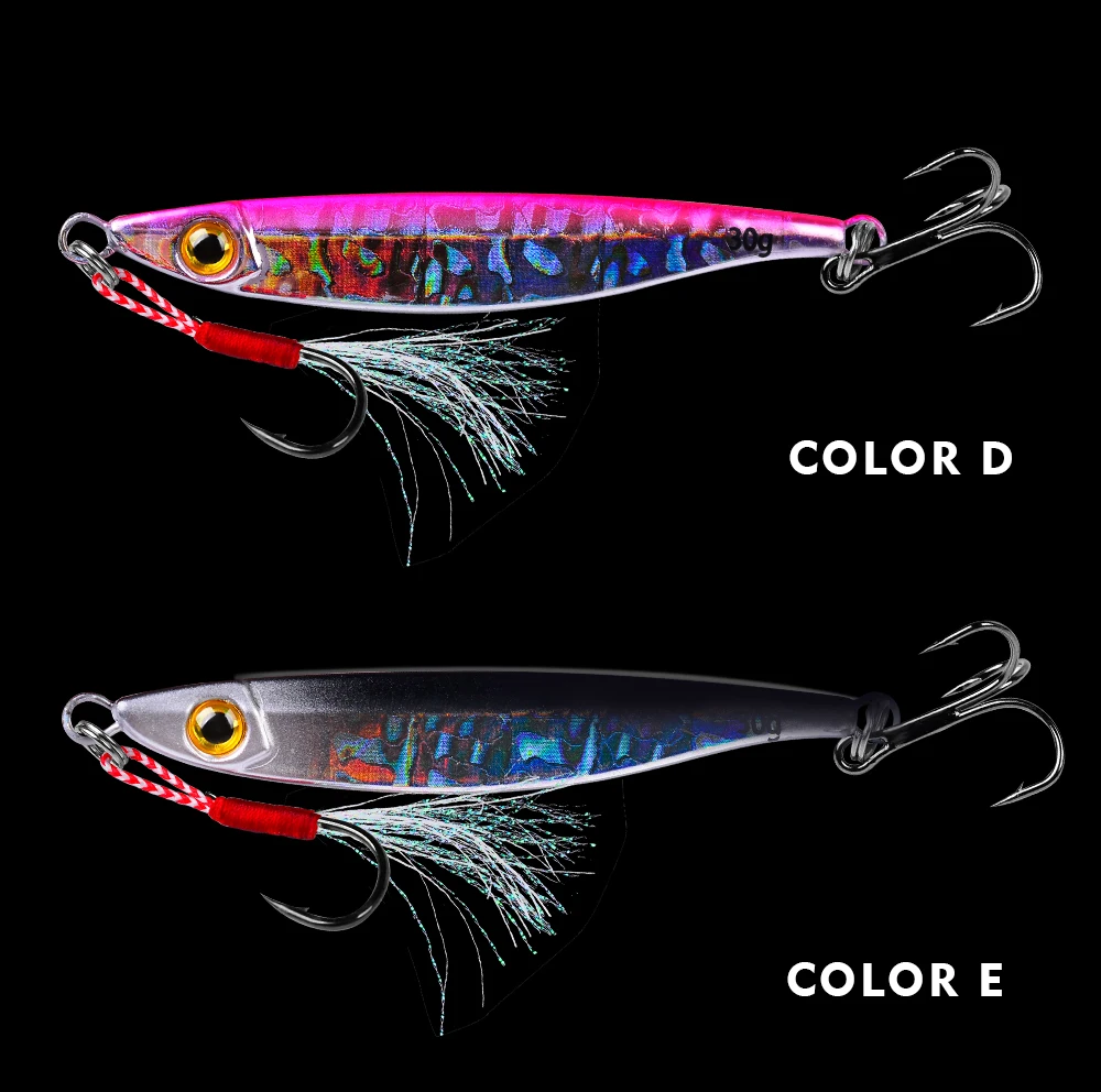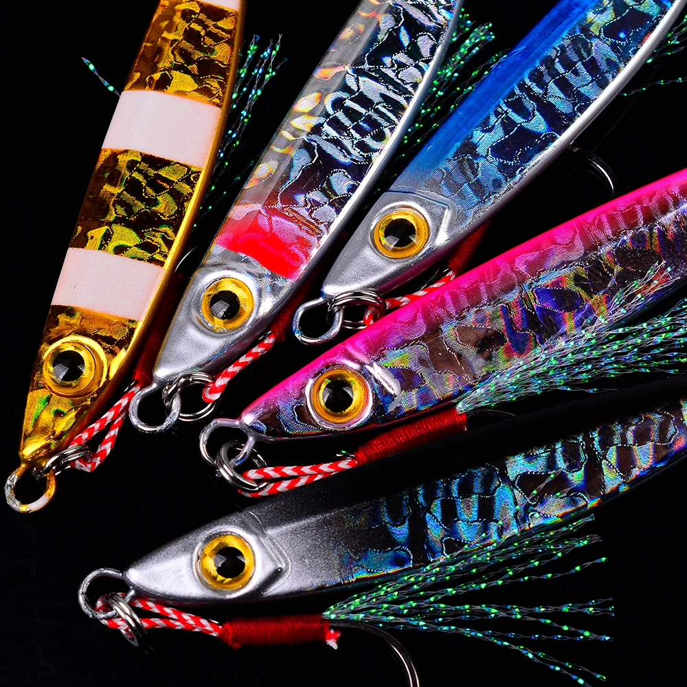 Color del producto: 5 colores disponiblesGancho: Gancho triple y gancho de asistenciaEl paquete incluye: 5 señuelos de Jigging DE LA piezas.