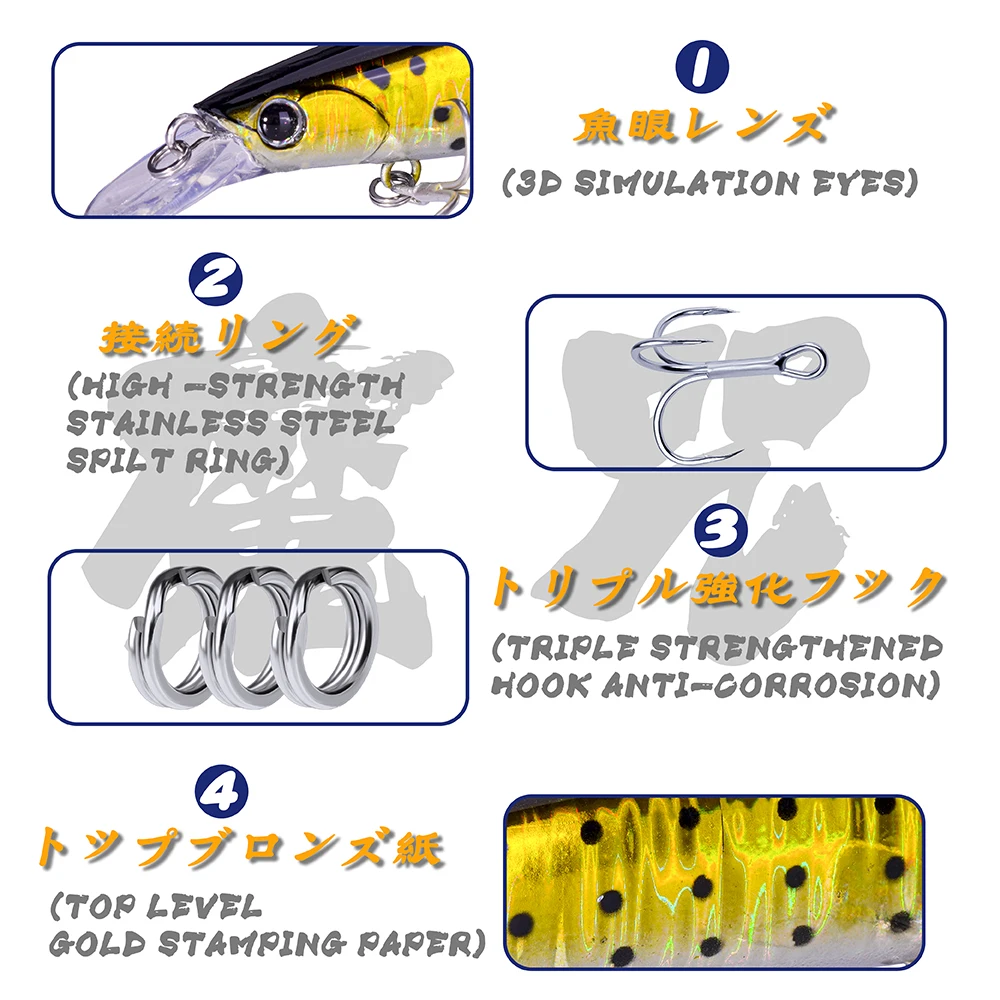 3. Los cebos tienen una pintura realista y ojos 3D vívidos, hacen que el cebo parezca un pez real nadando en el agua durante la pesca.