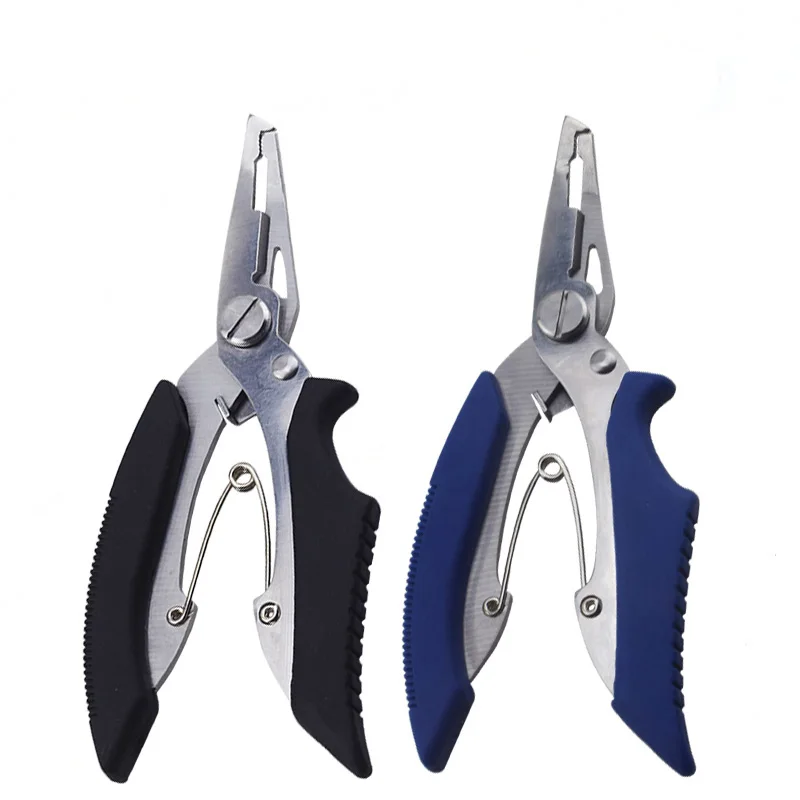 Proleurre-Alicates de pesca de acero inoxidable, con paquete de tijeras, cortador de línea, quitar anzuelo, herramienta de aparejos de pesca, negro/azul
