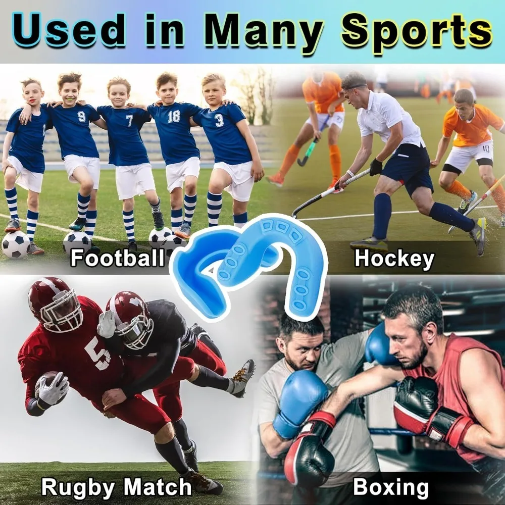 3. Amplia gama de aplicaciones: estos protectores bucales deportivos se pueden aplicar en muchas ocasiones, como boxeo, baloncesto, fútbol, hockey y muchos otros deportes y juegos de pelota, tanto personas experimentadas como principiantes pueden disfrutar de la comodidad que aportan.