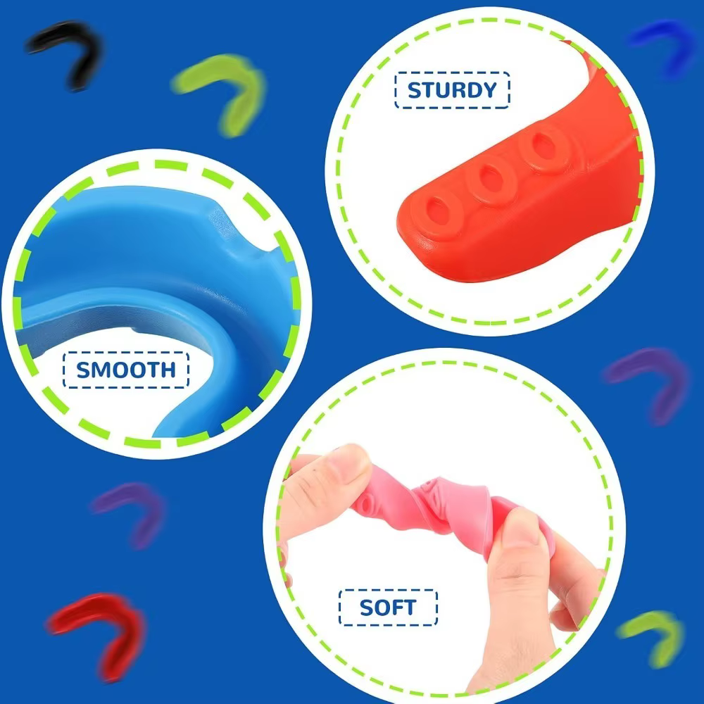 1. La abrazadera para la boca del fútbol está hecha de material de silicona, que es resistente, no es fácil de romper, deformar o decolorar, suave y tersa, lo que le brinda una sensación cómoda al tacto, adecuada para usar durante mucho tiempo.