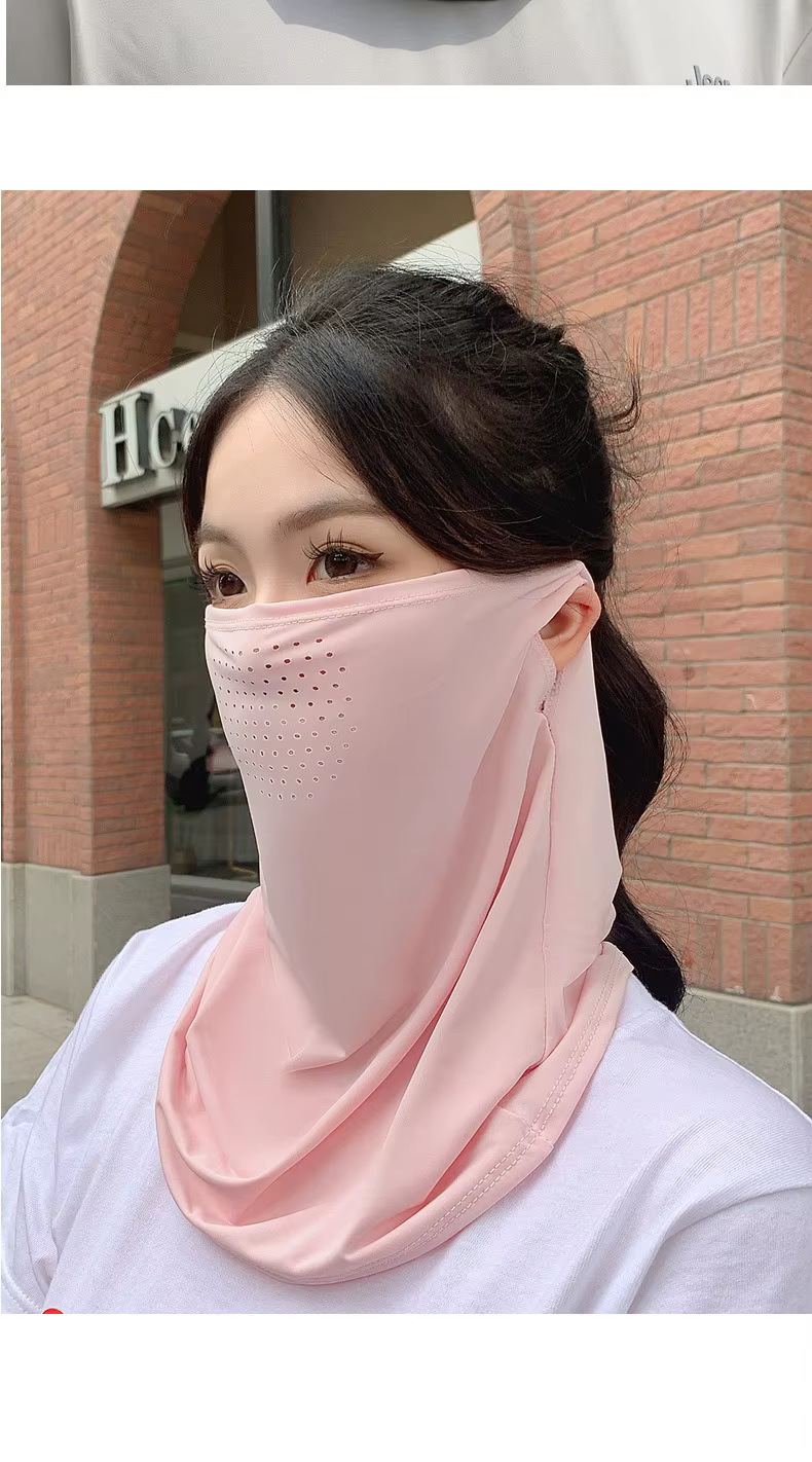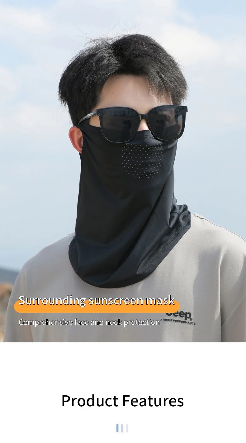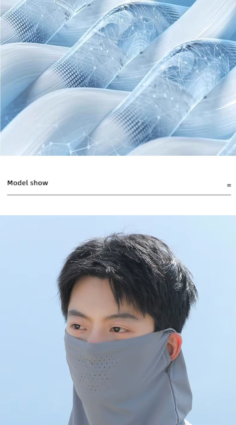 1.La mascarilla de seda helada de protección solar de verano es un equipo de protección facial muy práctico para protección solar y protección del cuello.Está hecho de material de seda helada, que es transpirable y cómodo, y puede prevenir eficazmente la luz solar directa y reducir el daño ultravioleta.